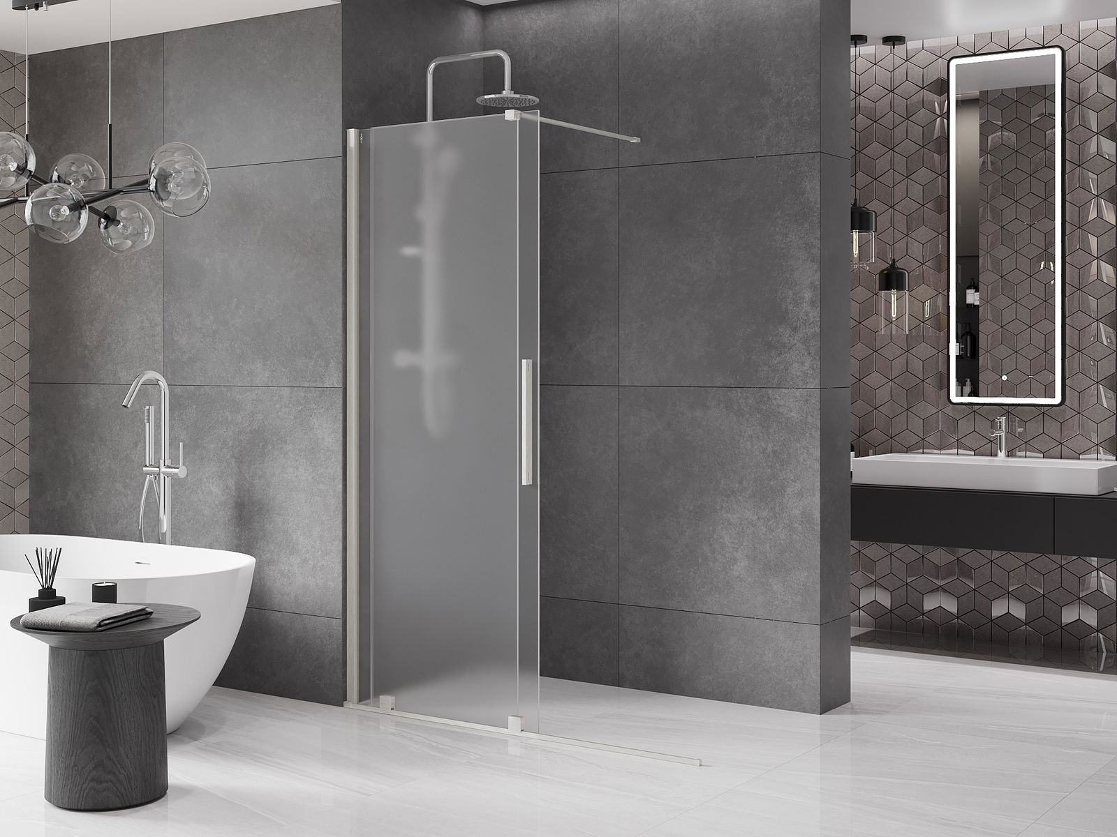 Практичната и удобна дръжка е изработена от неръждаема стомана. Модерната форма в комбинация с покритие, съчетано с цвета на профилите, придава на цялото съвременен и стилен вид, подчертавайки естетиката на всяка баня.