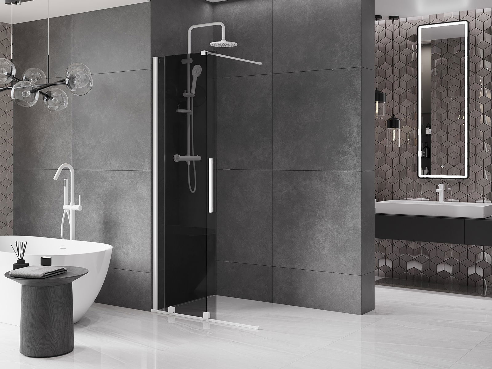 Mexen Velar плъзгаща се душ кабина Walk-in 90 x 200 cm, графит 8 мм, бяла - 871-090-000-43-20