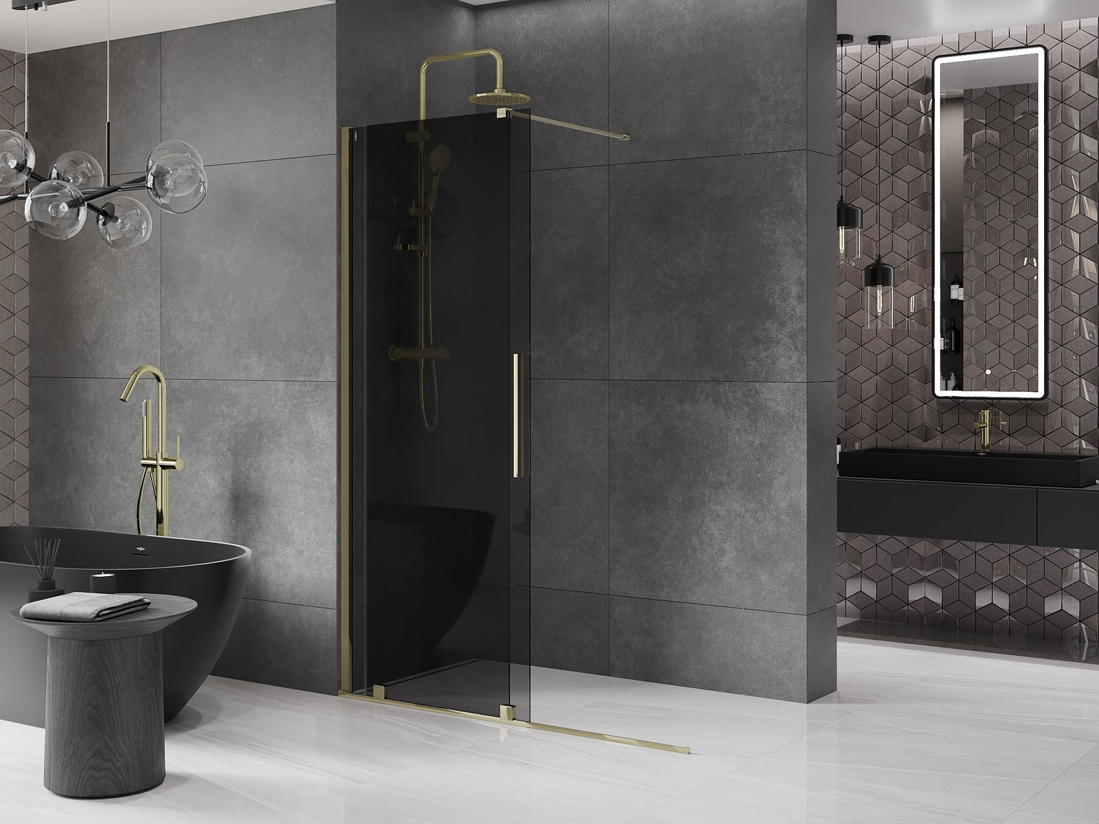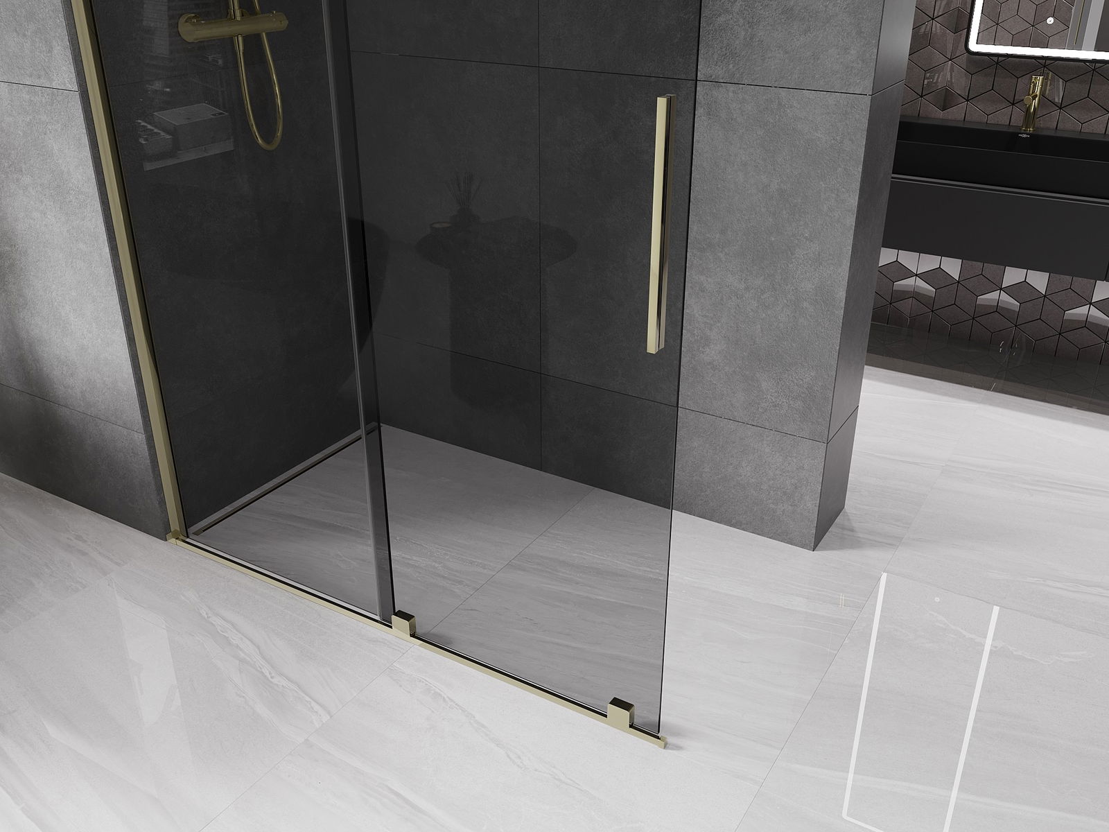 Mexen Velar плъзгаща се душ кабина Walk-in 150 x 200 см, графит 8 мм, златна - 871-150-000-43-50