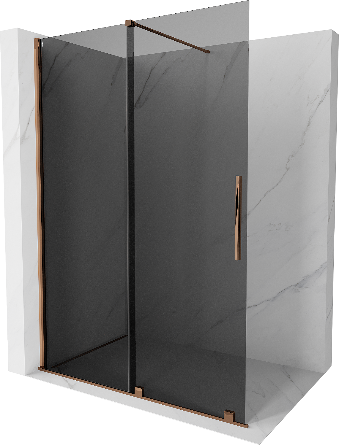 Mexen Velar плъзгаща се душ стена Walk-in 160 x 200 см, графит 8 мм, розово злато - 871-160-000-43-60