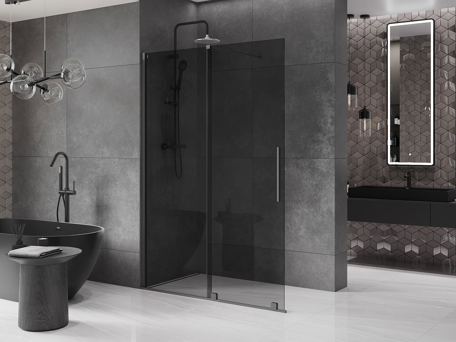 Mexen Velar плъзгаща се душ стена Walk-in 140 x 200 см, графит 8 мм, gun metal - 871-140-000-43-95