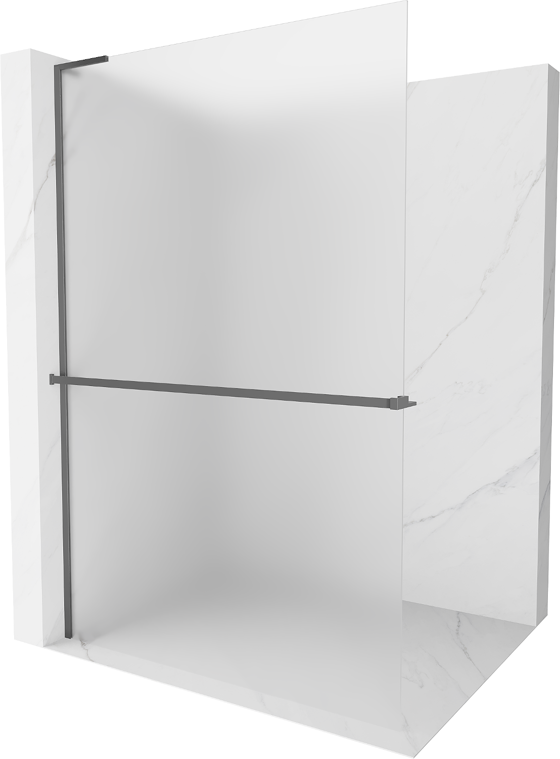 Mexen Kioto+ L душ кабина със стена с рафт Walk-in 70 x 200 см, матирано стъкло, gun metal - 800-070-123-95-30