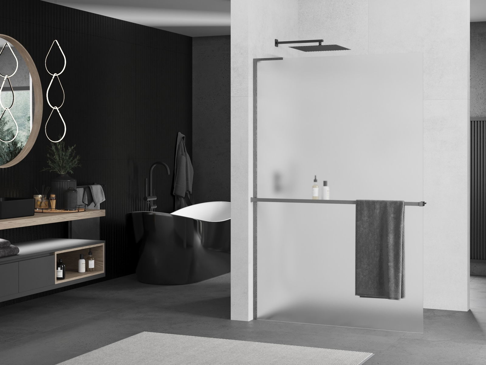 Държачът за кърпа в стената на душ кабината е много практично и удобно решение. По време на къпане кърпата винаги е подръка, улеснявайки свободното използване. Това също е идеалното място за изсушаване на кърпата.