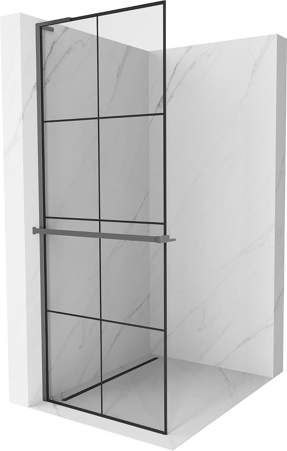 Mexen Kioto+ L стена за душ с рафт Walk-in 90 x 200 см, черна решетка, gun metal - 800-090-123-95-77