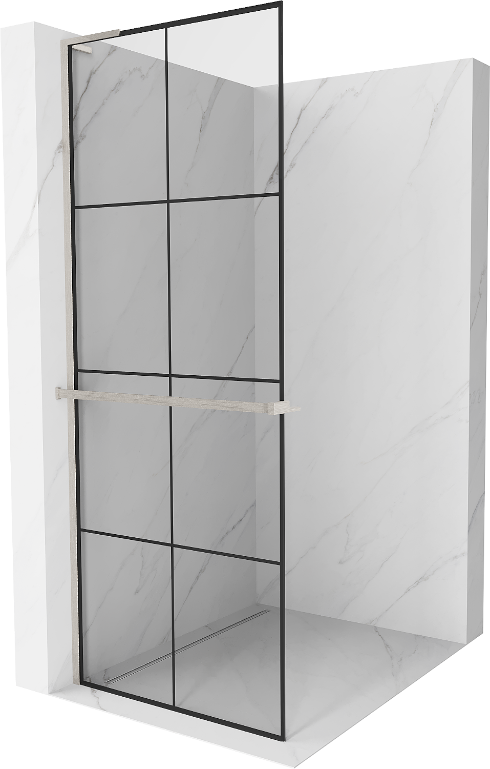 Mexen Kioto+ L душ преграда с рафт Walk-in 90 x 200 см, черна решетка, матиран никел - 800-090-123-97-77