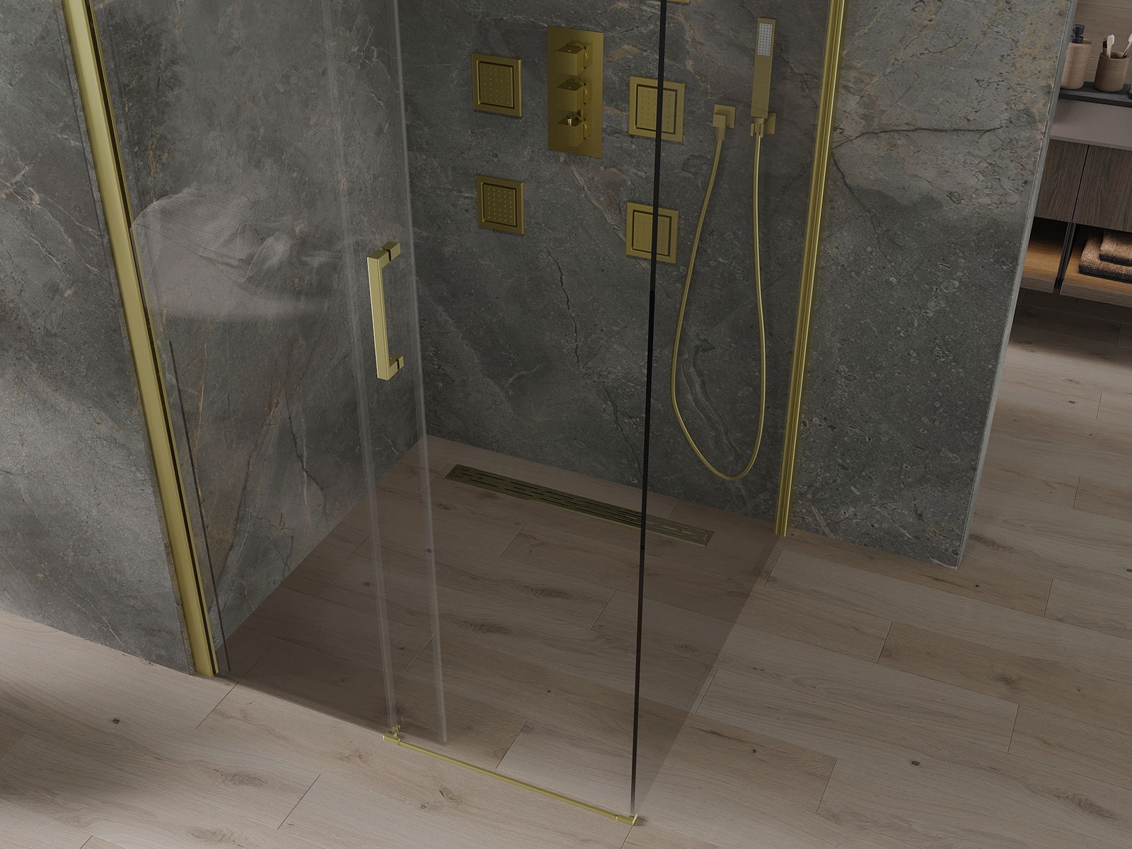 Mexen Omega плъзгаща се душ кабина 100 x 100 см, прозрачна, златна - 825-100-100-50-00