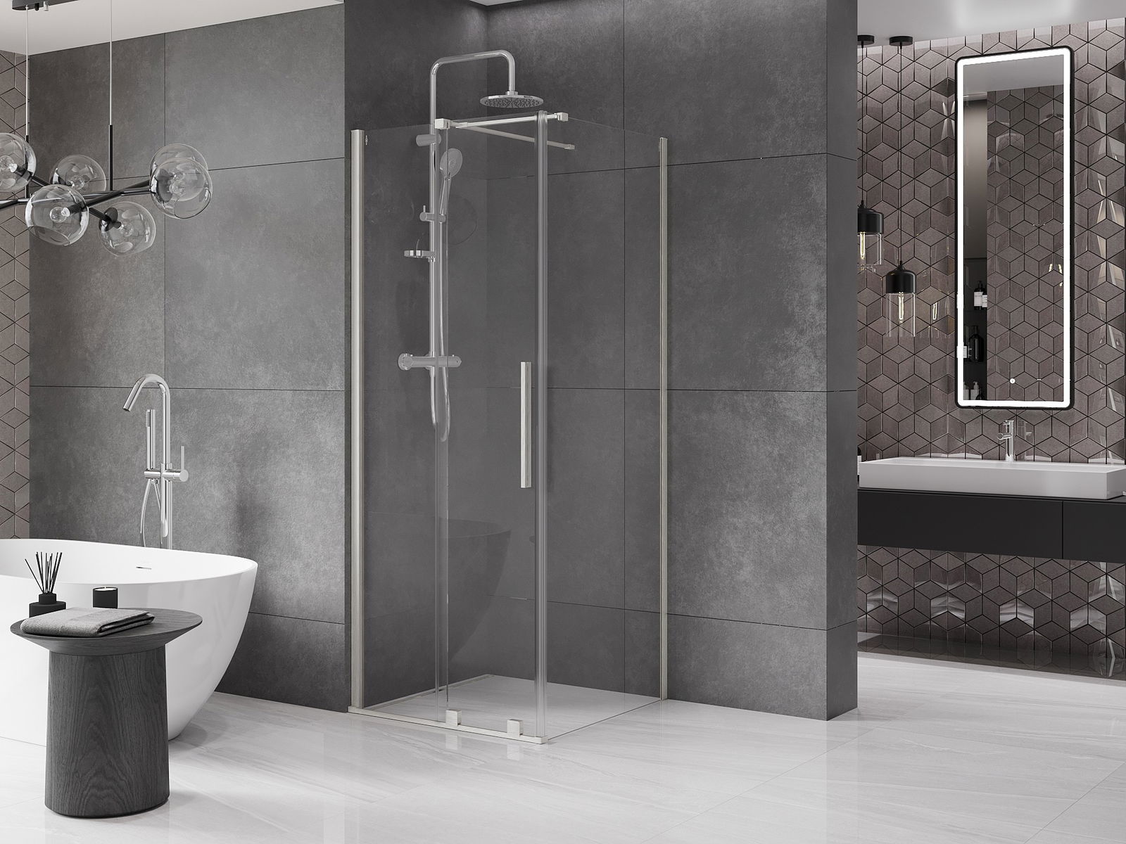Mexen Velar плъзгаща се душ кабина 110 x 110 см, прозрачна, четкан никел - 871-110-110-01-97