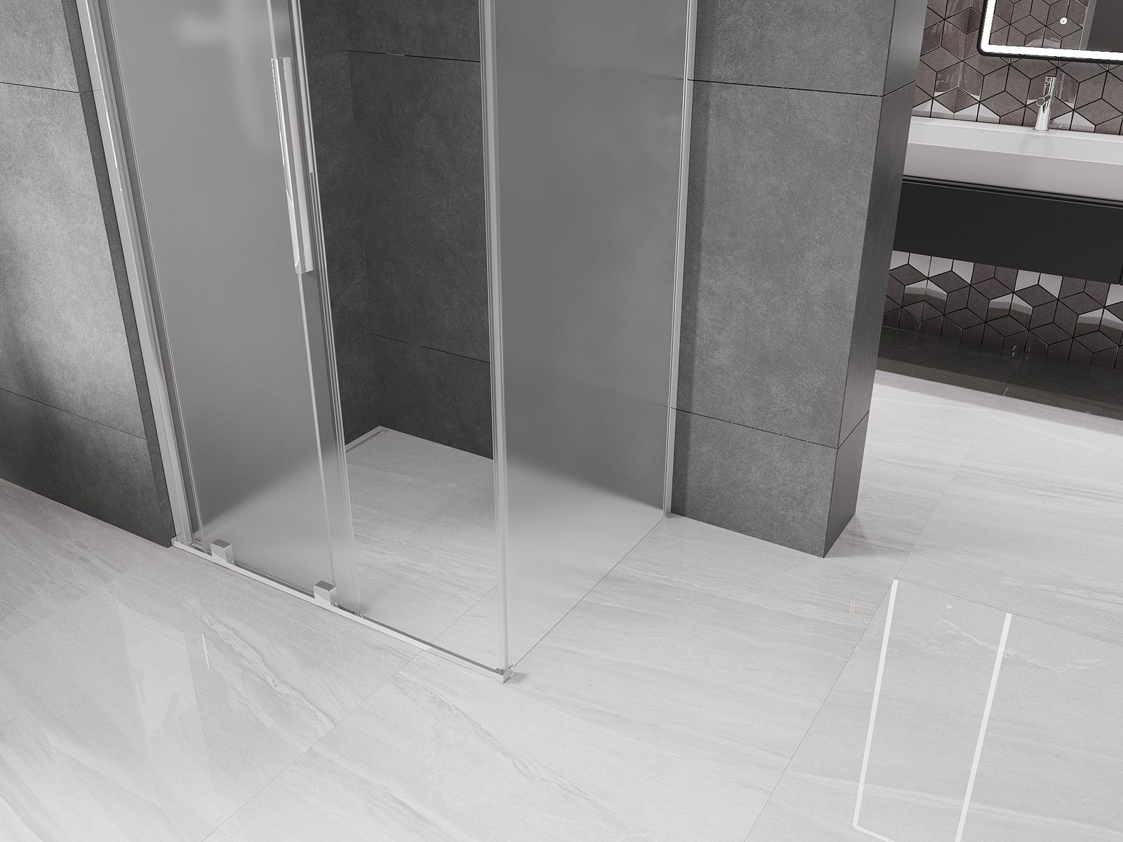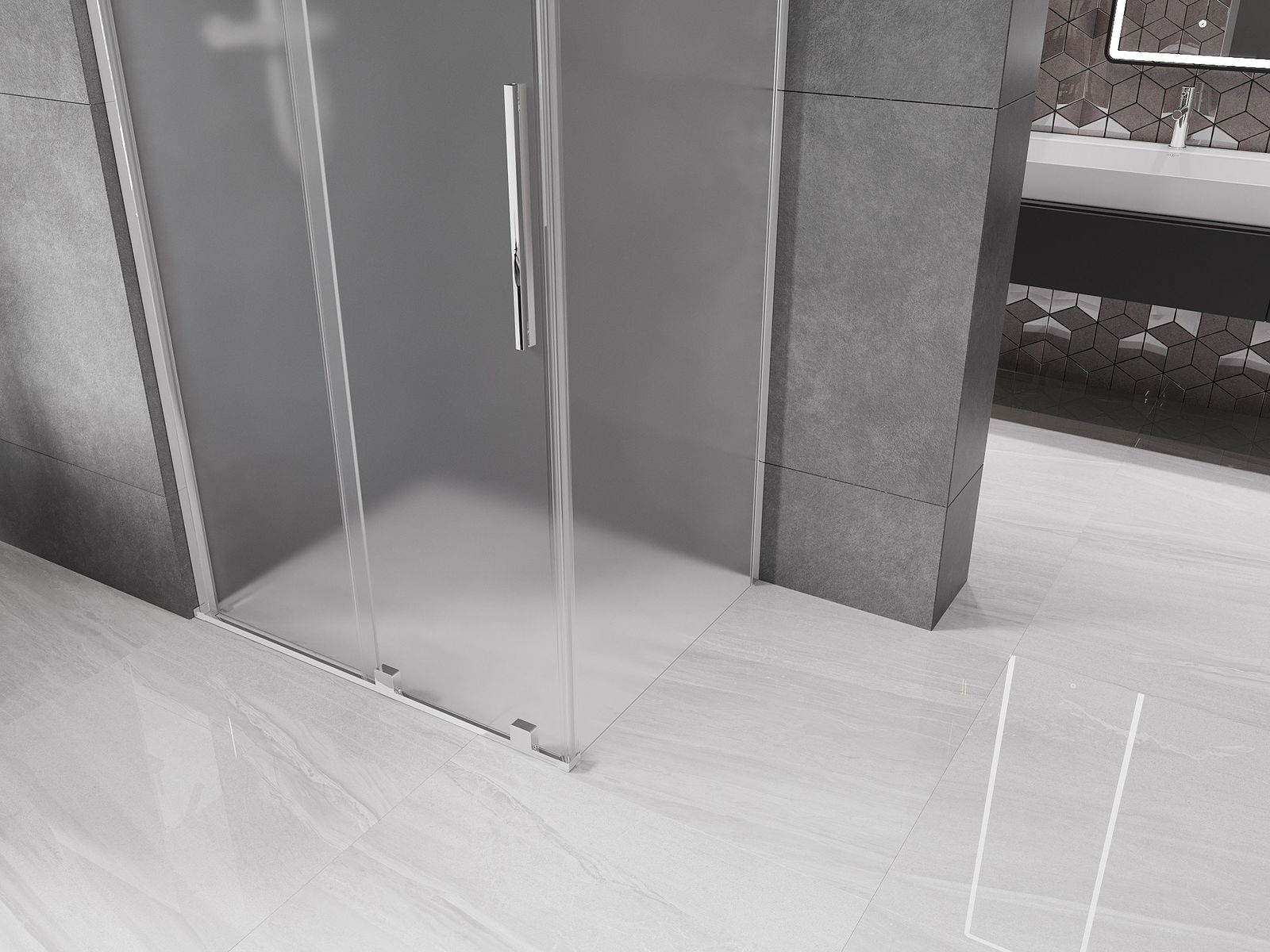 Mexen Velar плъзгаща се душ кабина 130 x 100 см, матирано стъкло, хром