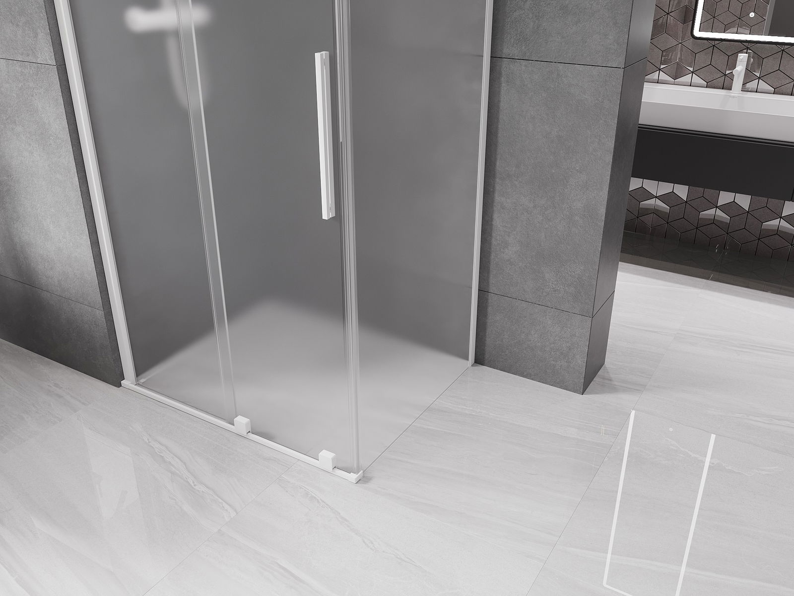 Mexen Velar плъзгаща се душ кабина 100 x 75 cm, матирана, бяла - 871-100-075-31-20