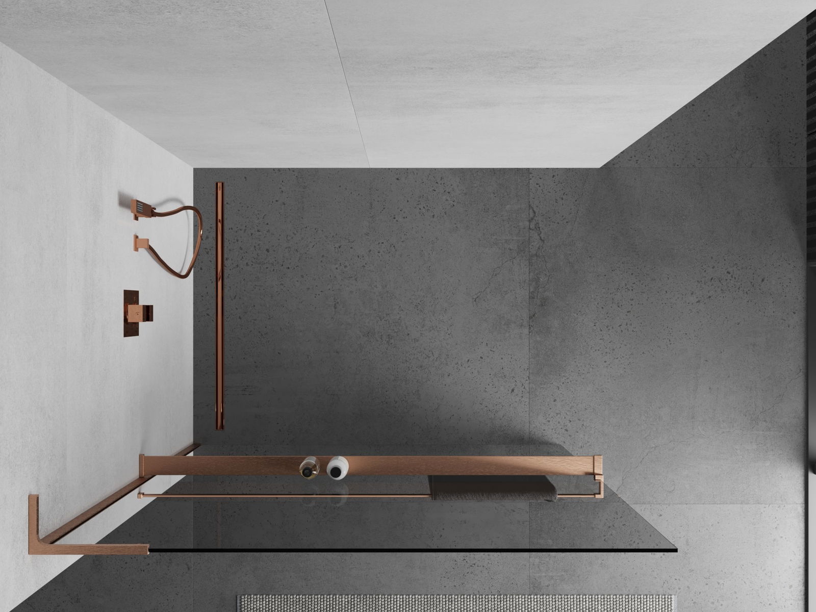 Mexen Kioto+ L душ екран с рафт Walk-in 60 x 200 см, прозрачен, четкан мед - 800-060-123-65-00