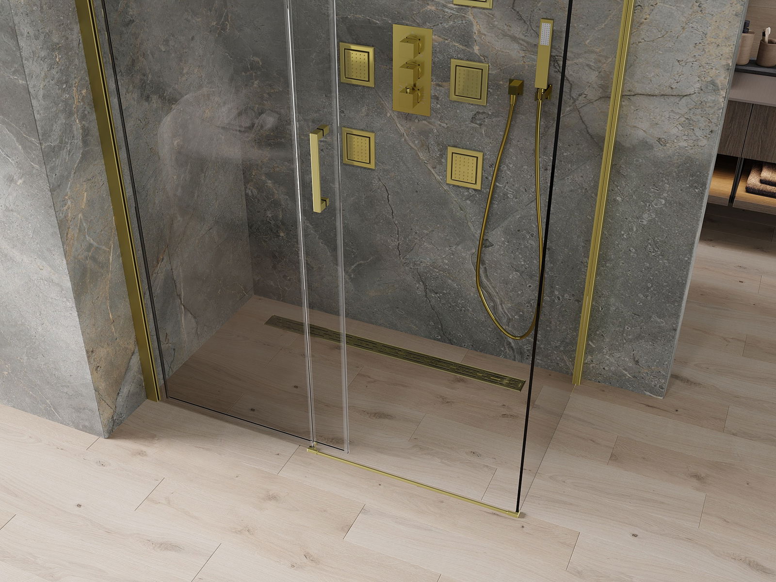 Mexen Omega плъзгаща се душ кабина 140 x 70 см, прозрачна, златна - 825-140-070-50-00