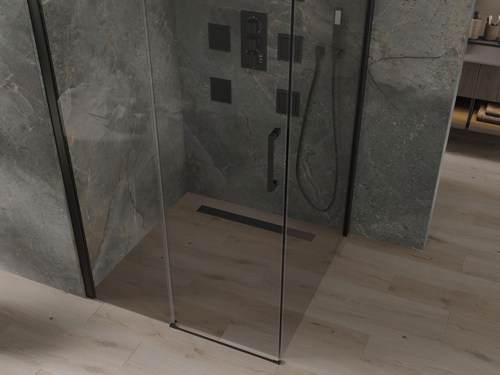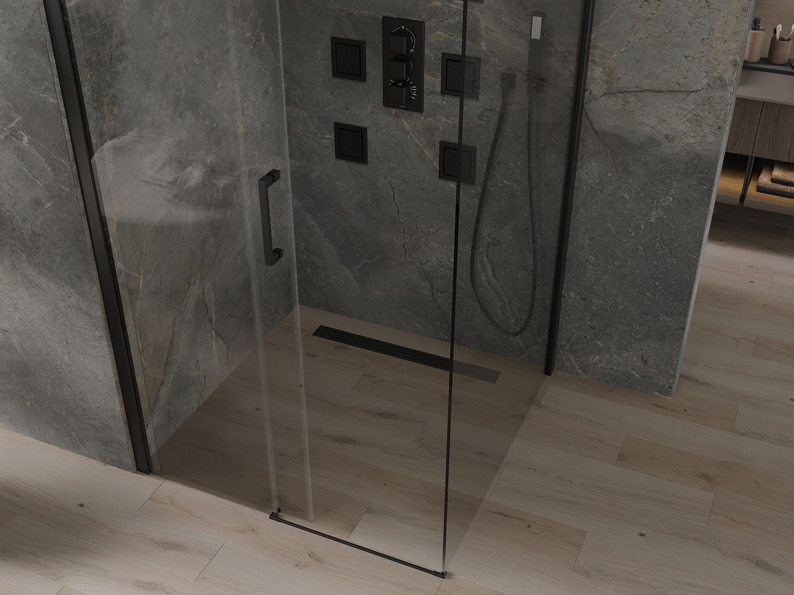 В зависимост от вашите нужди, продуктът може да бъде монтиран както на таблата за душ, така и директно на пода. Универсалният метод за монтаж ви позволява да адаптирате продукта към различни видове бани и да конфигурирате място.
