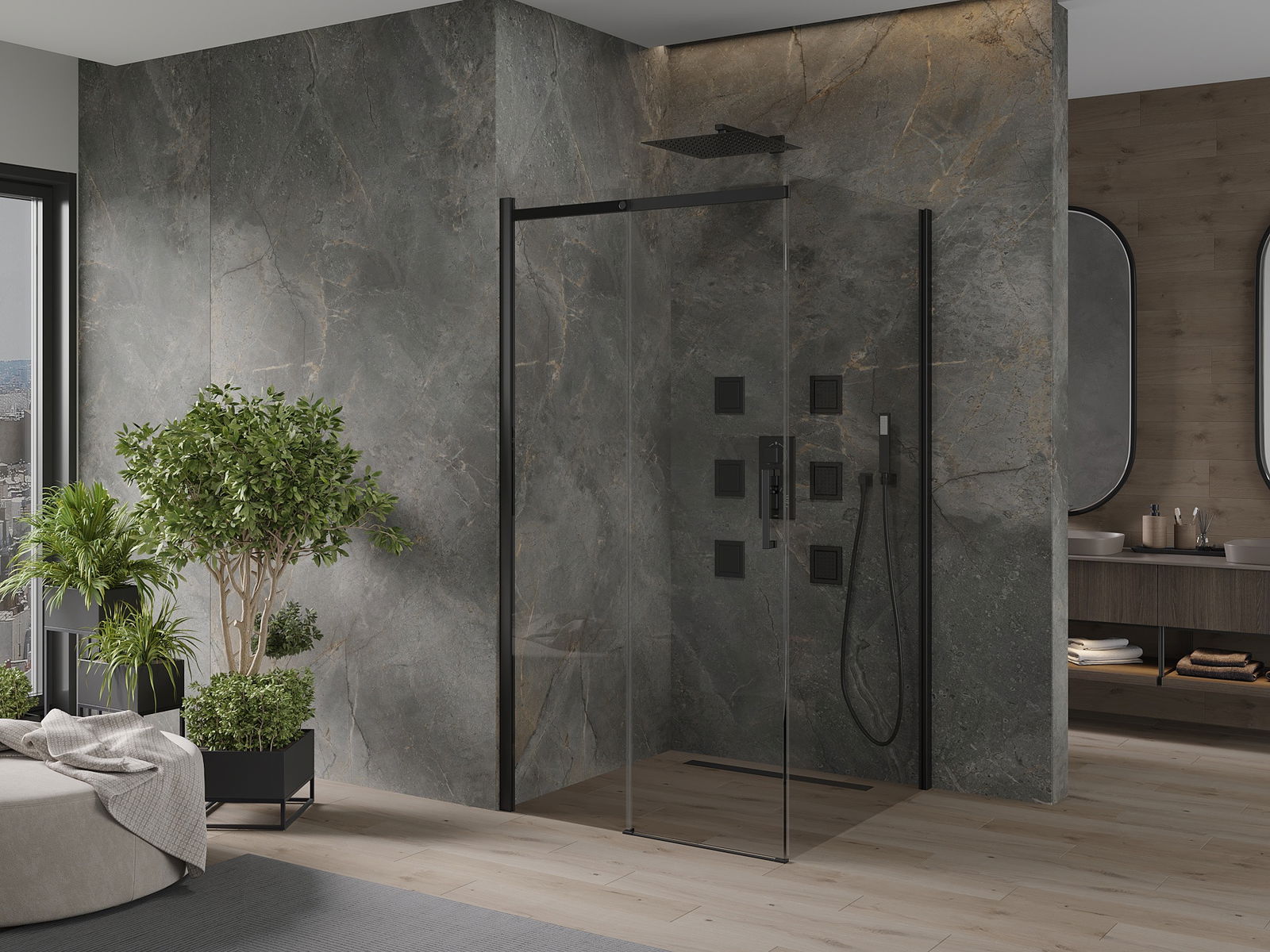 Плъзгащите се врати се движат около специални водачи и не изискват допълнително място, за да ги отворят, така че те ще работят в по -малки бани. Благодарение на двойните ролки с метално тяло, тяхното движение е течно.