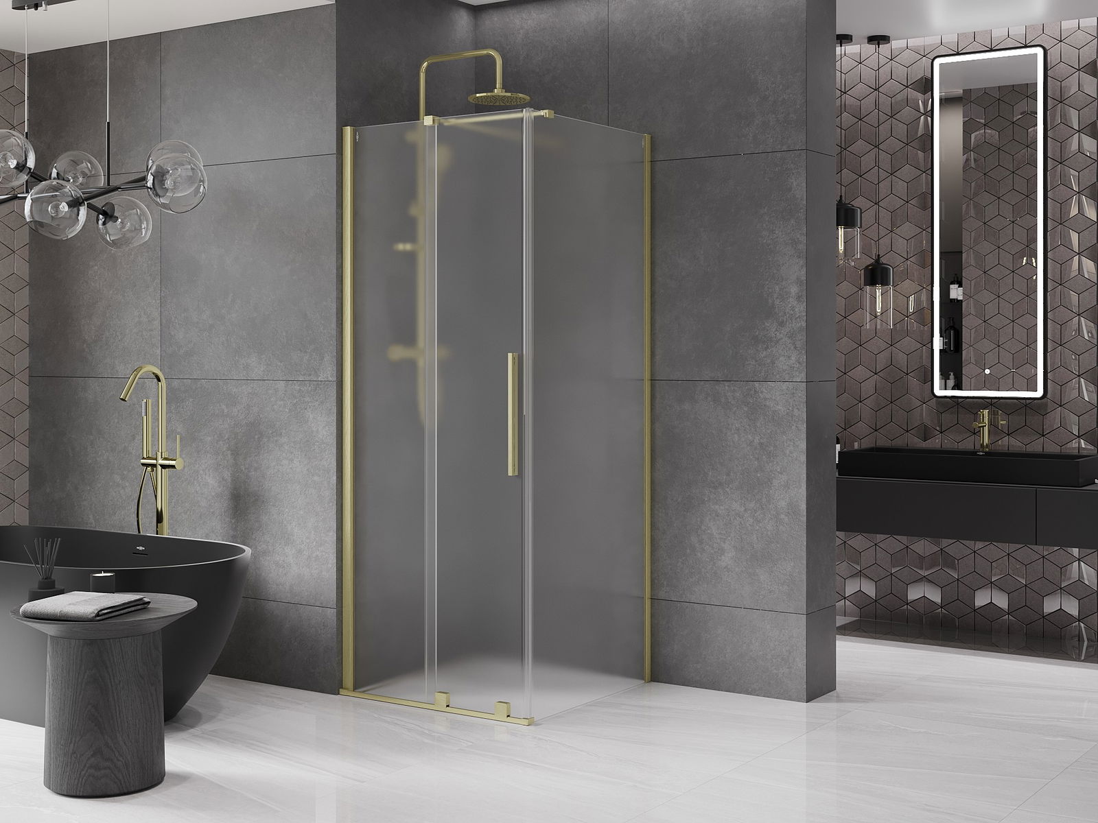 Практичната и удобна дръжка е изработена от неръждаема стомана. Модерната форма в комбинация с покритие, съчетано с цвета на профилите, придава на цялото съвременен и стилен вид, подчертавайки естетиката на всяка баня.