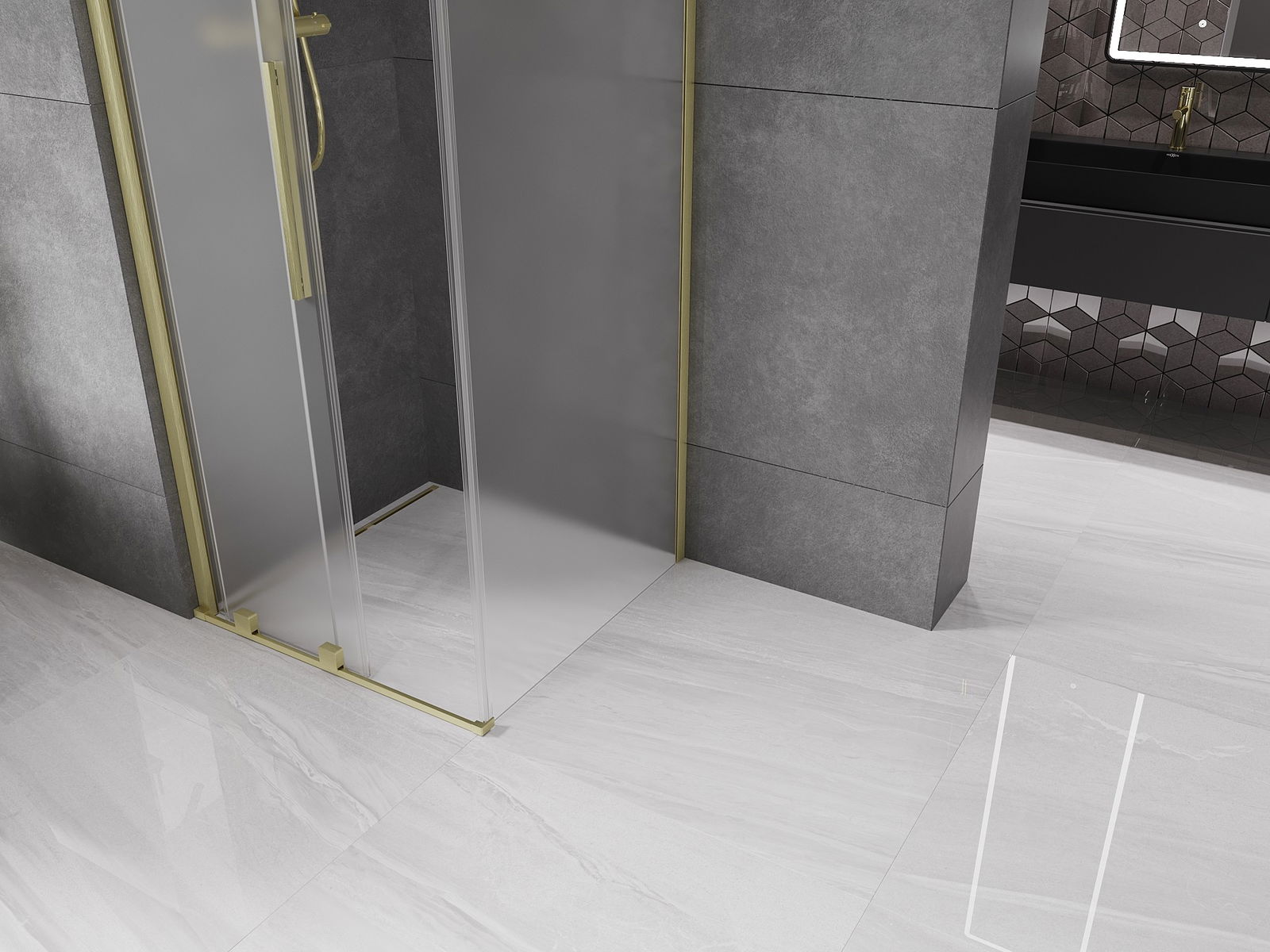 Mexen Velar плъзгаща се душ кабина 110 x 110 см, матирана, златно четкано - 871-110-110-31-55
