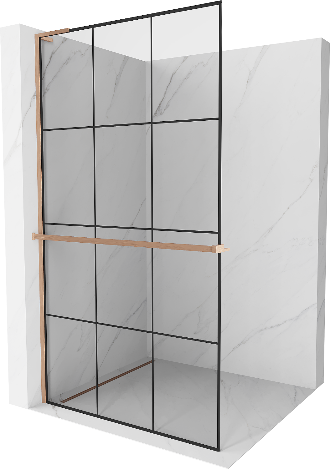 Mexen Kioto+ L Душ-стена с рафт Walk-in 120 x 200 cm, черна решетка, матирана мед - 800-120-123-65-77