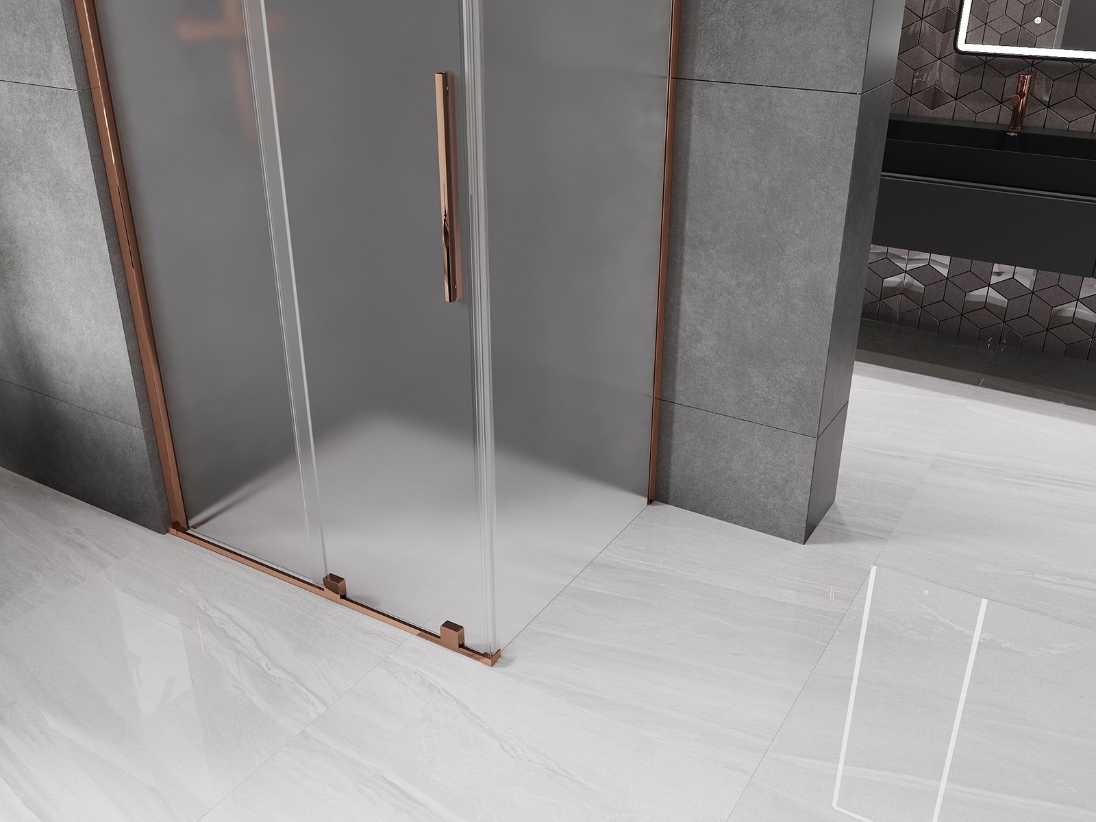 Mexen Velar плъзгаща се душ кабина 120 x 70 см, матирано стъкло, розово злато - 871-120-070-31-60
