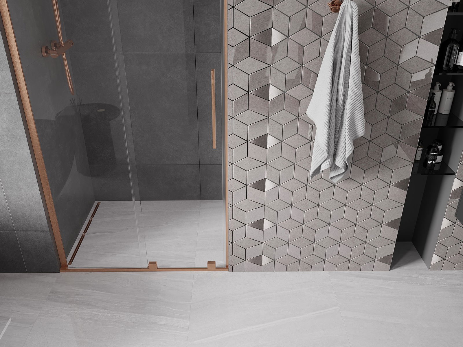 Mexen Velar L плъзгащи се душ врати 120 см, прозрачни, четкан мед - 871-120-003-01-65