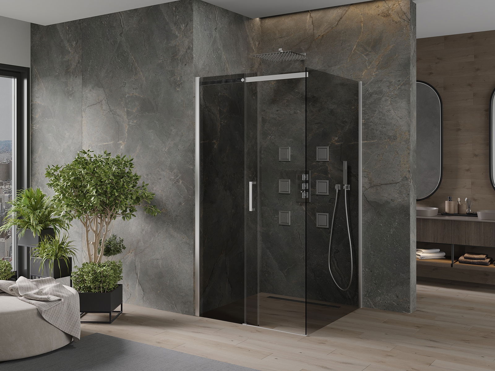 Плъзгащите се врати се движат около специални водачи и не изискват допълнително място, за да ги отворят, така че те ще работят в по -малки бани. Благодарение на двойните ролки с метално тяло, тяхното движение е течно.
