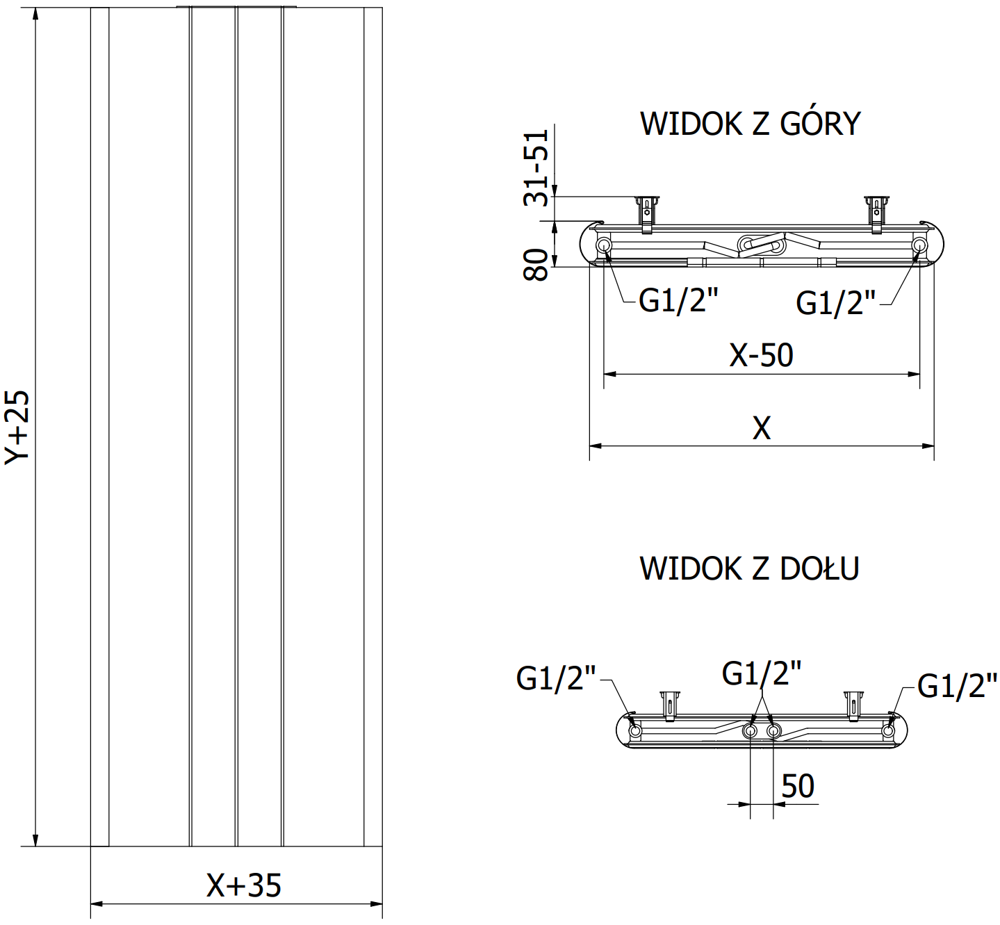 Mexen VR20SL Линеен панелен радиатор 1800 x 500 мм, централно долно свързване,