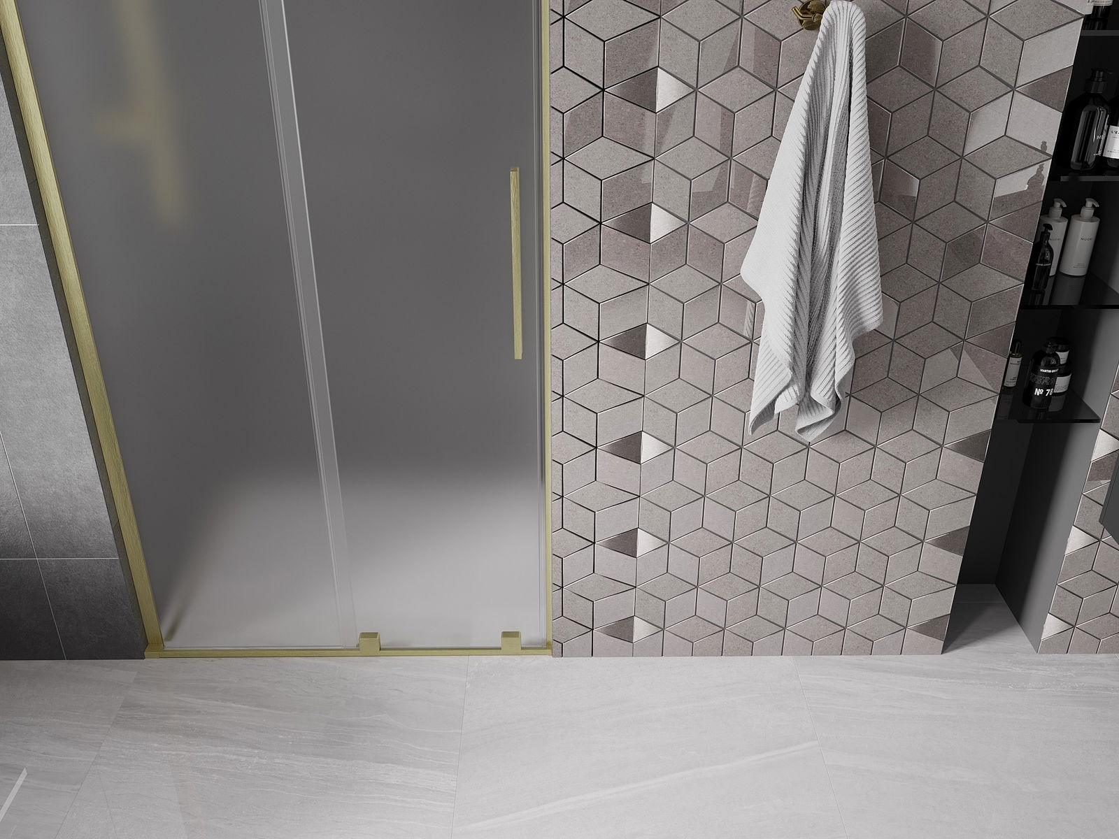 Mexen Velar L плъзгаща се душ врата 110 см, матирано стъкло, златни четки - 871-110-003-31-55