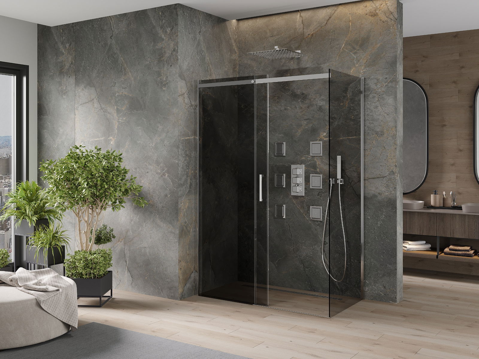 Плъзгащите се врати се движат около специални водачи и не изискват допълнително място, за да ги отворят, така че те ще работят в по -малки бани. Благодарение на двойните ролки с метално тяло, тяхното движение е течно.