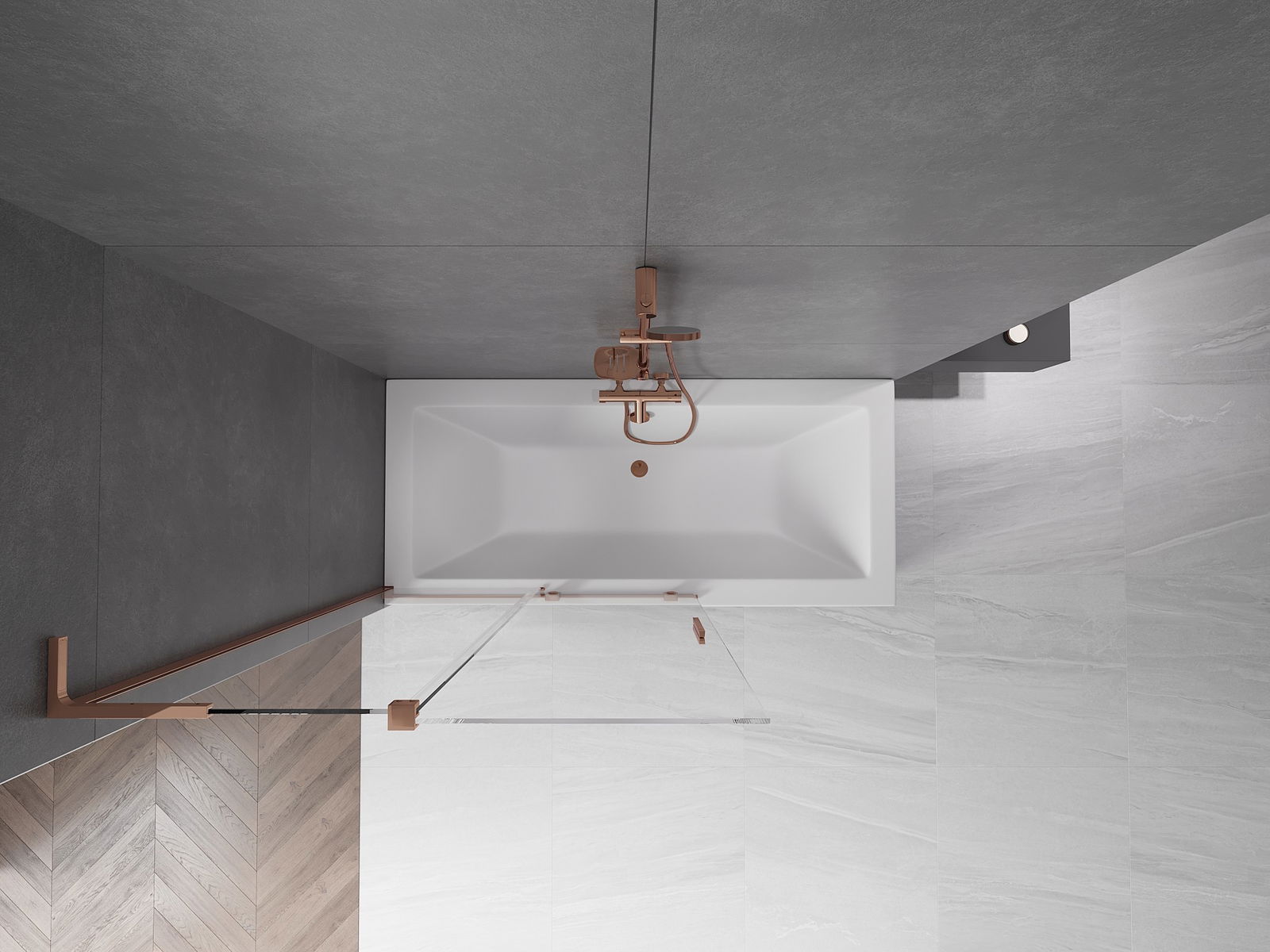 Mexen Velar L преграда за вана, двукрила, плъзгаща се 110 x 150 см, прозрачна, розово злато - 896-110-003-01-60