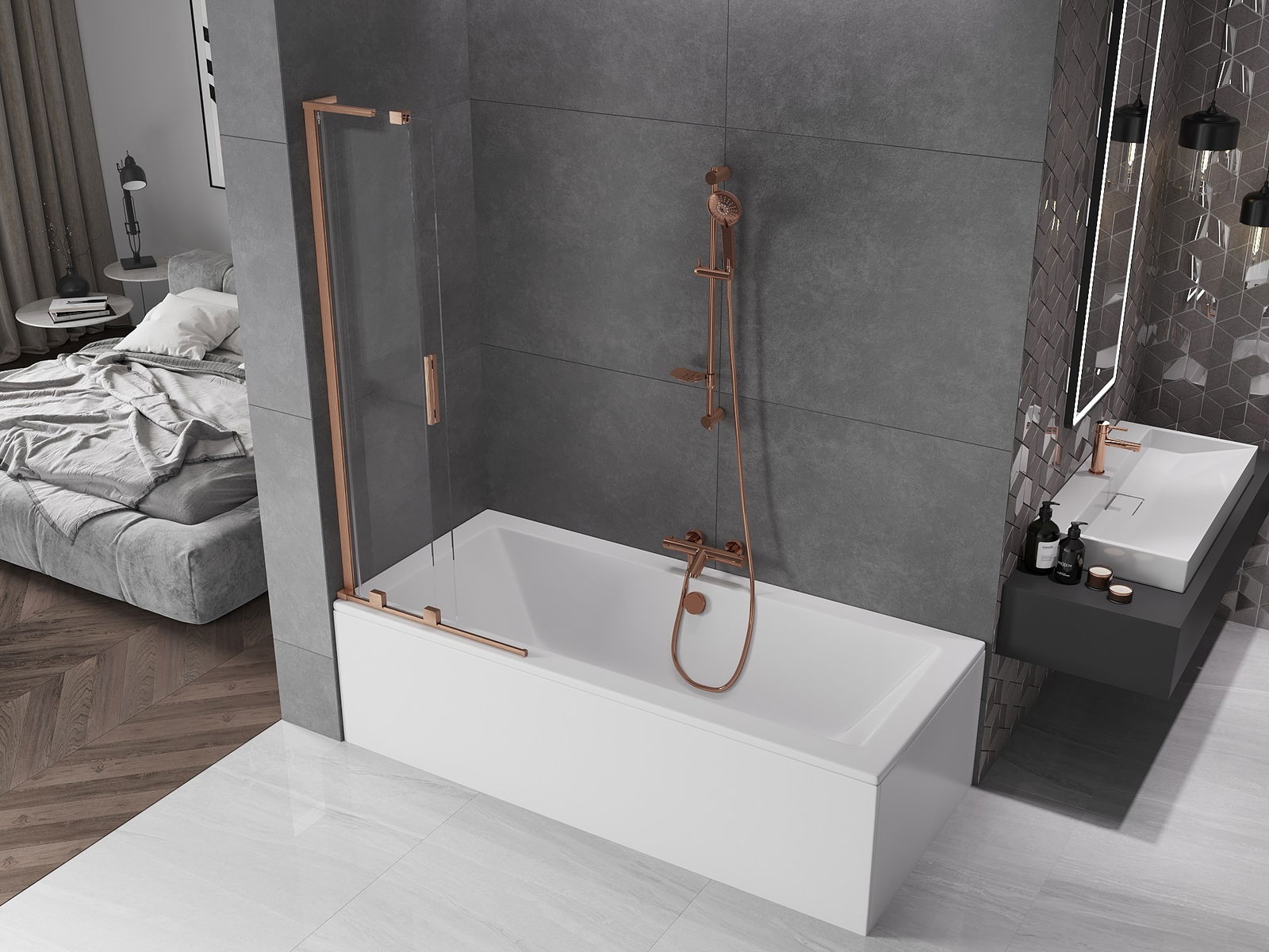 Mexen Velar L параван за вана, 2-крилен плъзгащ се 70 x 150 см, прозрачен, четкана мед - 896-070-003-01-65