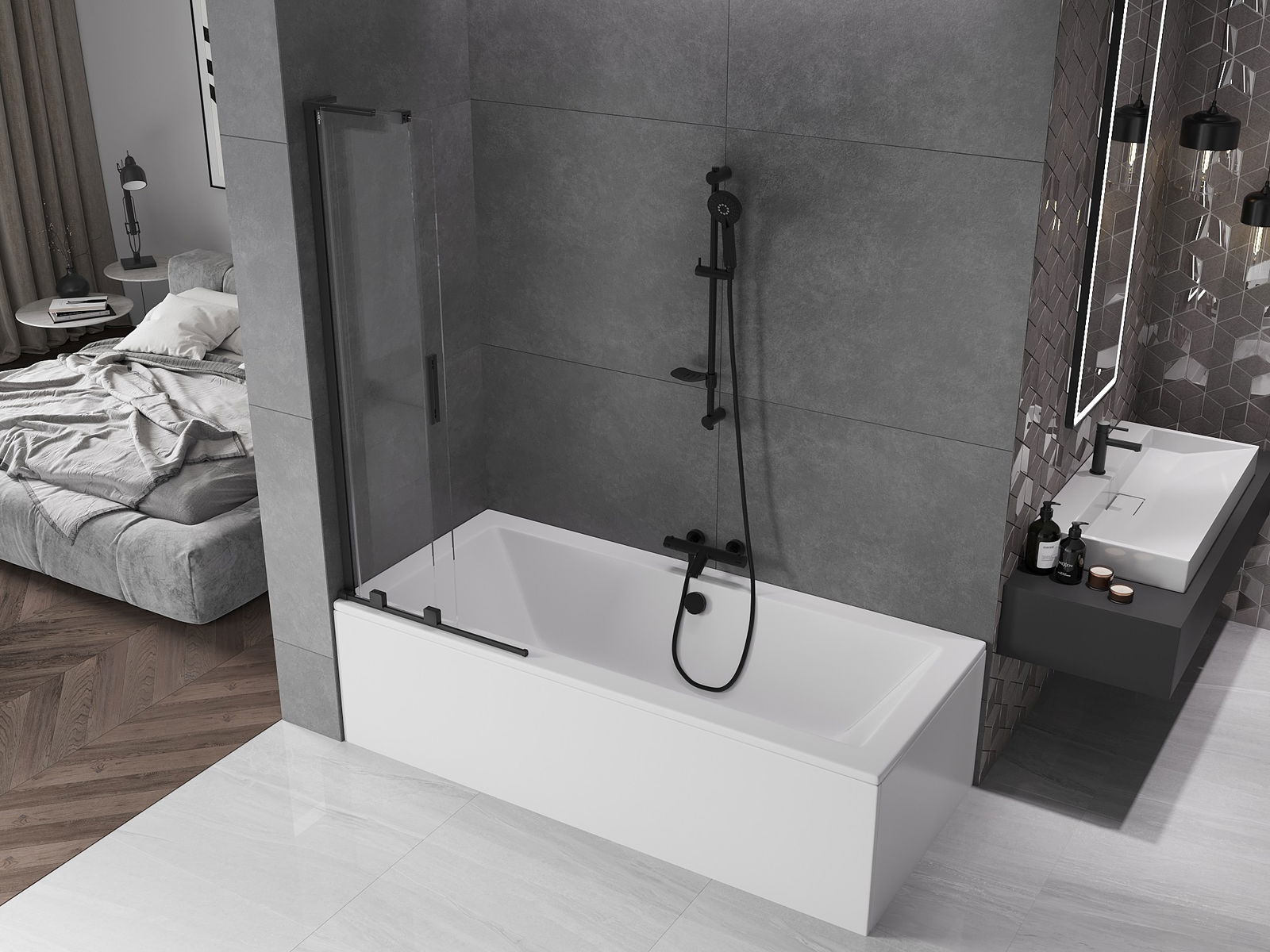 Mexen Velar L сгъваем екран за баня с 2 крила 70 x 150 см, прозрачен, черен - 896-070-003-01-70