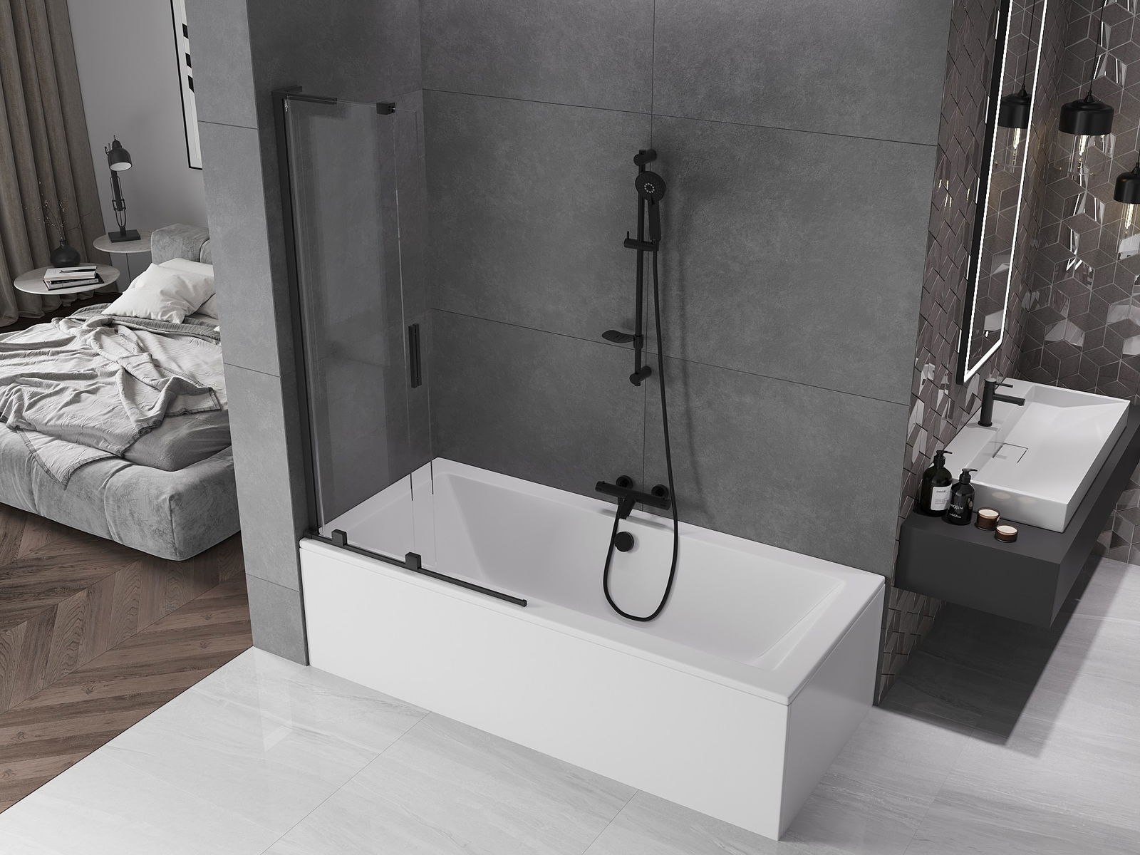 Mexen Velar L параван за вана с 2 плъзгащи се крила 95 x 150 см, прозрачен, черен