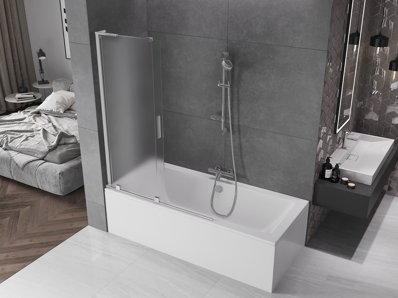 Mexen Velar L сгъваем параван за вана с 2 крила, плъзгащ се 120 x 150 см, мраз, хром - 896-120-003-31-01