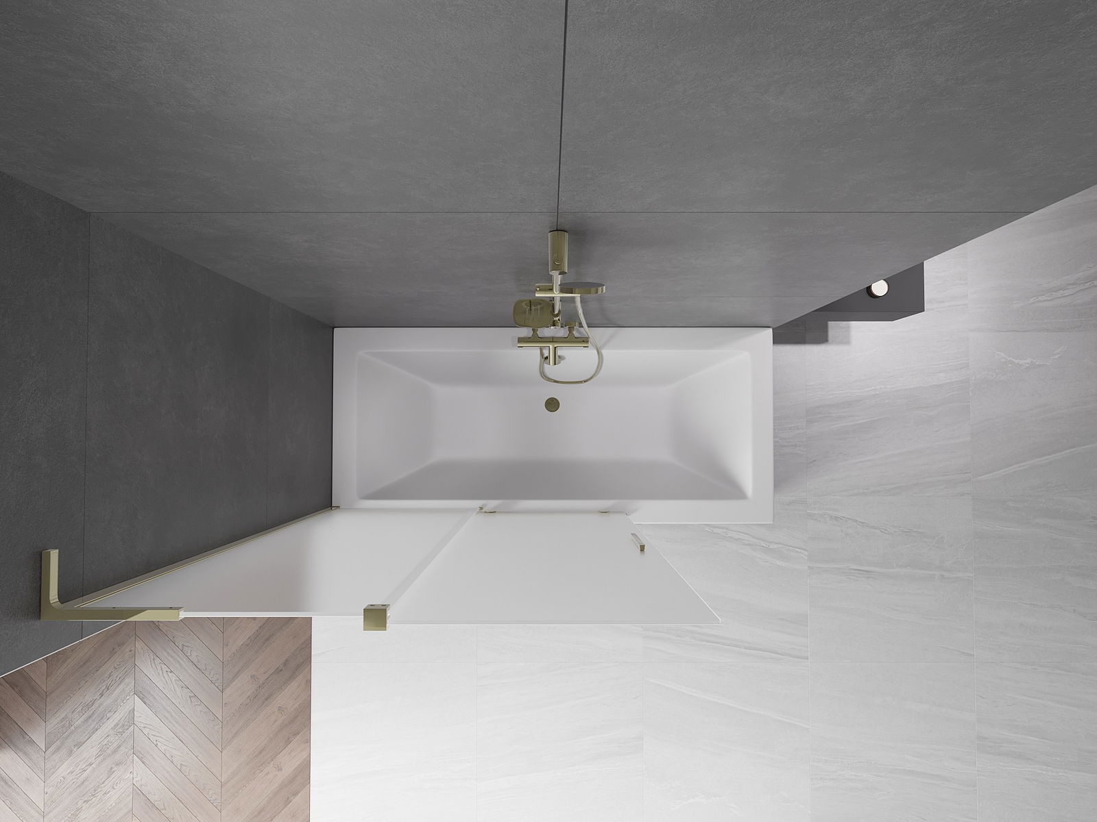 Mexen Velar L преграда за вана, плъзгаща се, 2-крила, 120 x 150 см, матирано, златно - 896-120-003-31-50