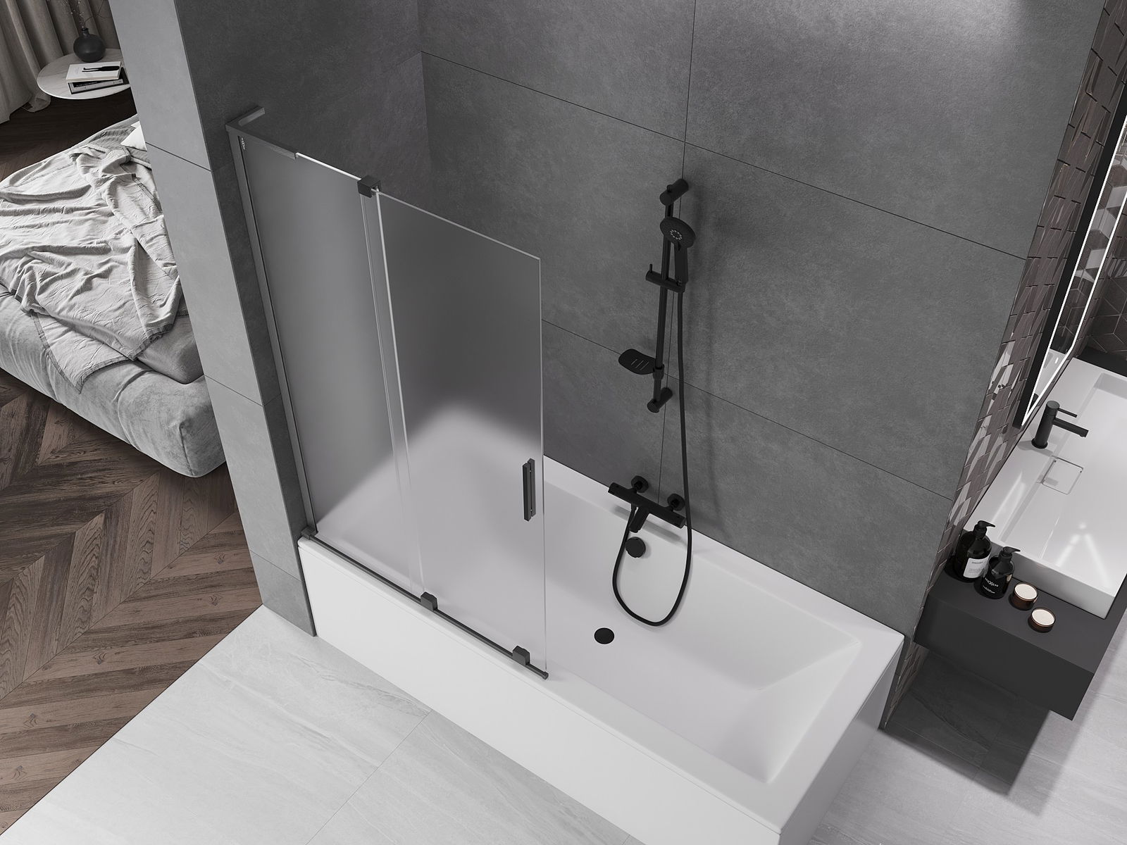 Mexen Velar L двукрилен разтегателен параван за баня 100 x 150 см, матиран, четкано сиво - 896-100-003-31-66