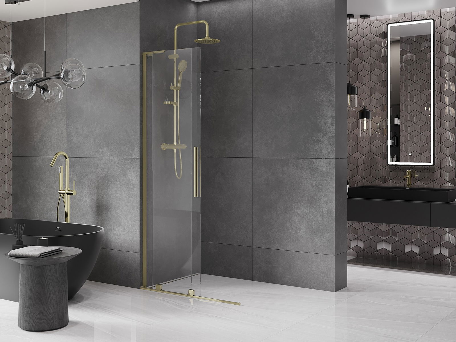Практичната и удобна дръжка е изработена от неръждаема стомана. Модерната форма в комбинация с покритие, съчетано с цвета на профилите, придава на цялото съвременен и стилен вид, подчертавайки естетиката на всяка баня.