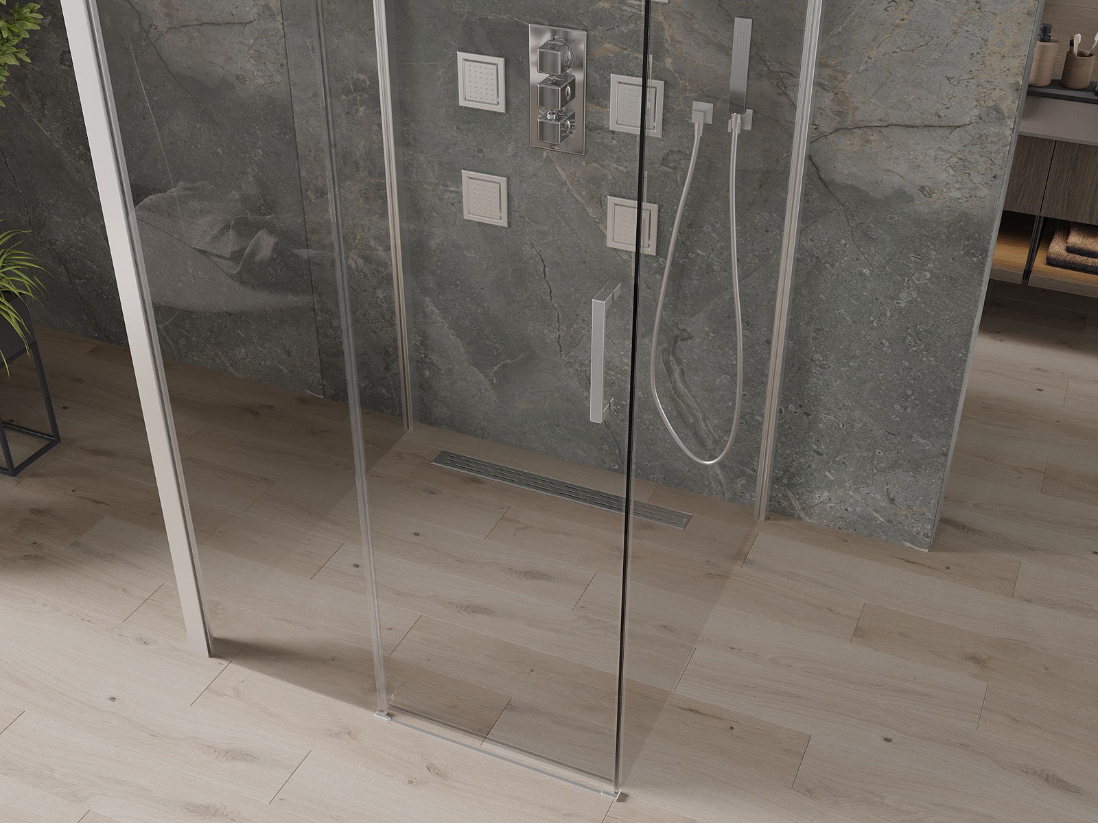 Продуктът може да се монтира както на душова корито, така и директно на пода, в зависимост от нуждите. Универсалният начин на монтаж позволява адаптиране на продукта към различни видове бани и конфигурации на пространството.