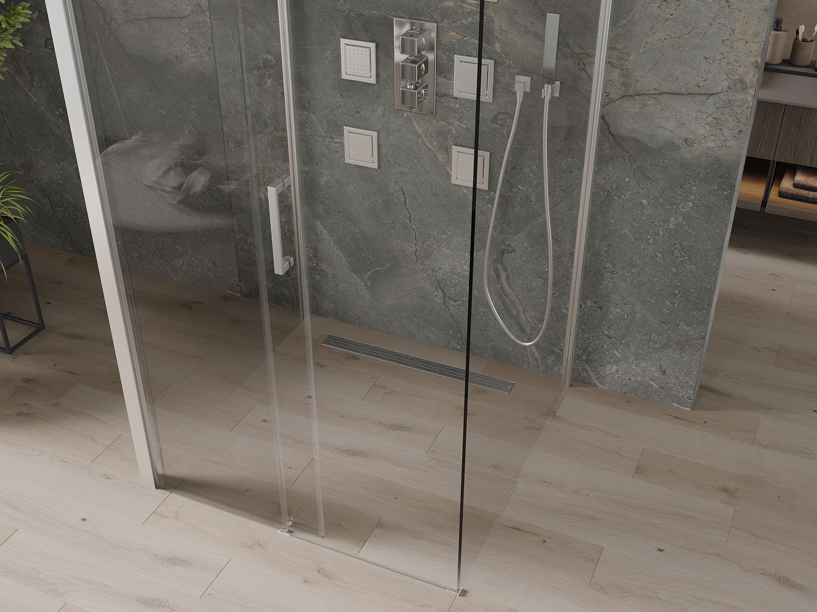 Плъзгащите се врати се движат по специални водачи и не изискват допълнително пространство, за да се отворят, поради което са подходящи за по-малки бани. Благодарение на двойните ролки с метално тяло, движението им е гладко.