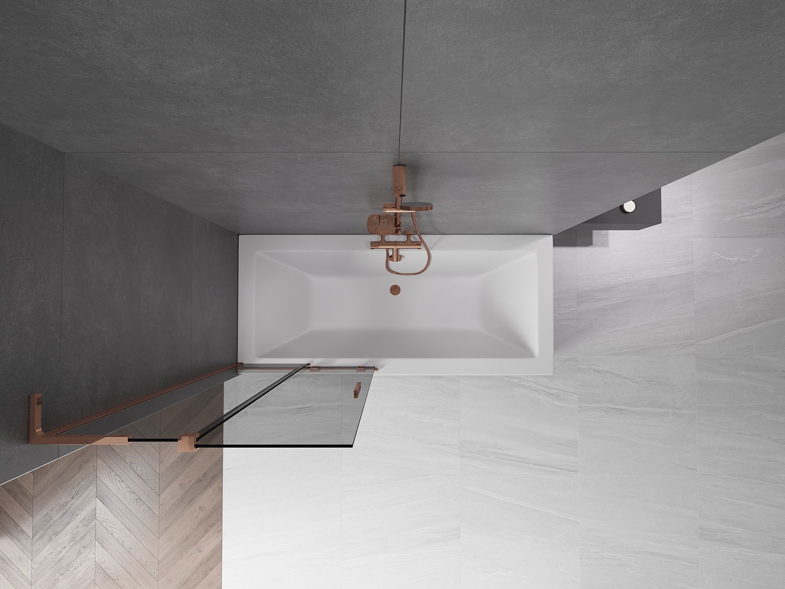 Mexen Velar L сгъваем параван за вана с 2 крила 85 х 150 см, графит, розово злато - 896-085-003-41-60