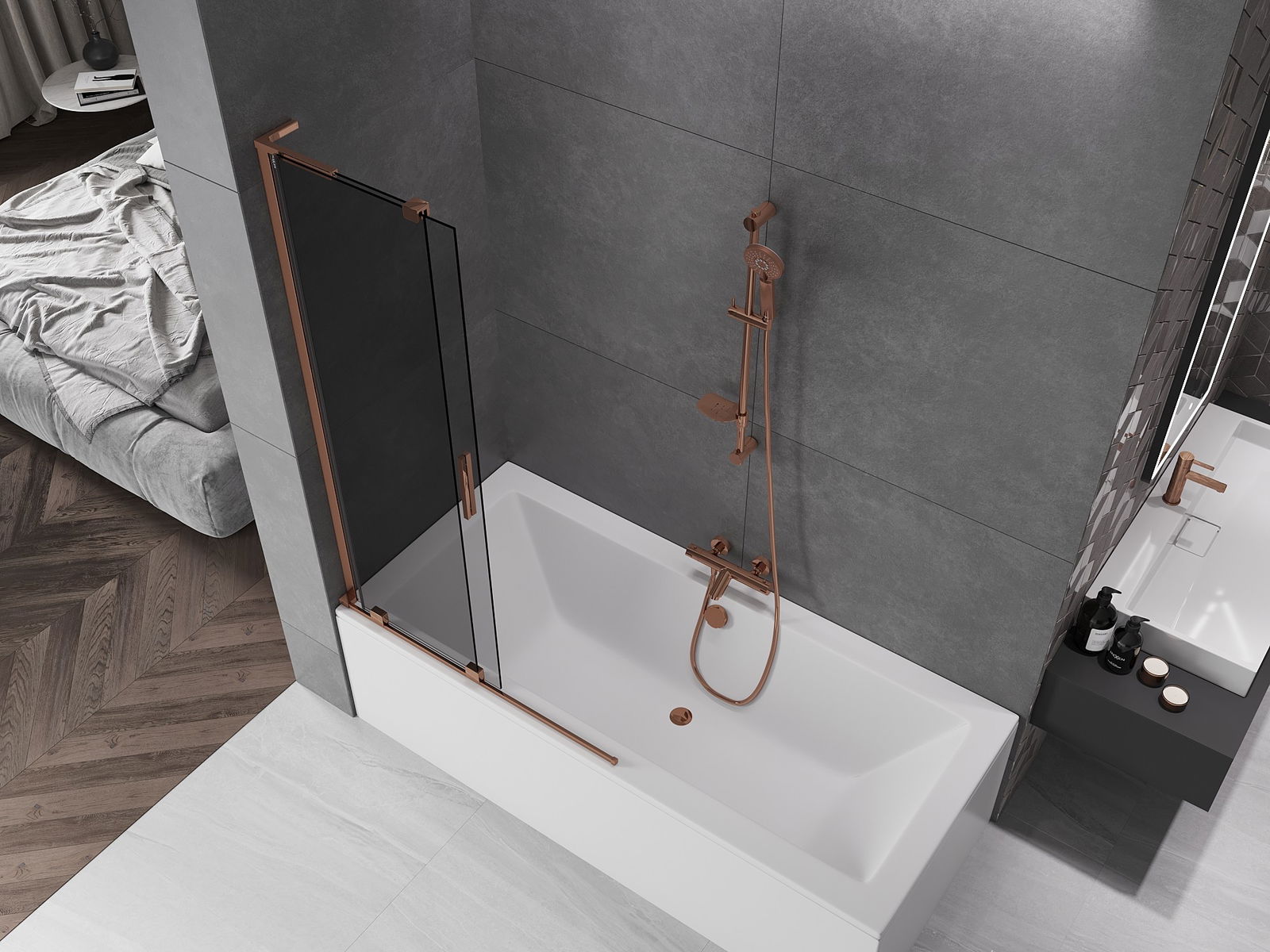 Mexen Velar L сгъваем параван за вана с 2 крила 100 x 150 см, графит, розово злато - 896-100-003-41-60