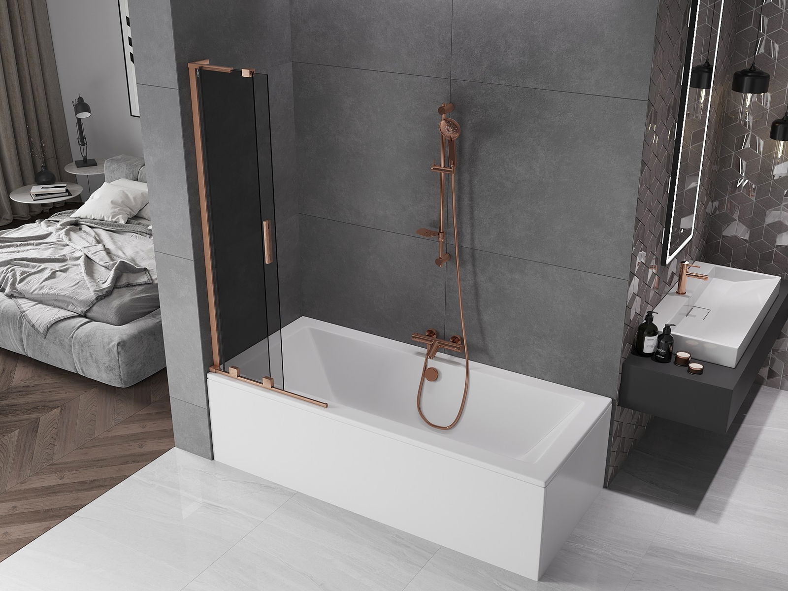 Mexen Velar L параван за вана, двукрилен плъзгащ се 70 x 150 см, графит, четкана мед - 896-070-003-41-65