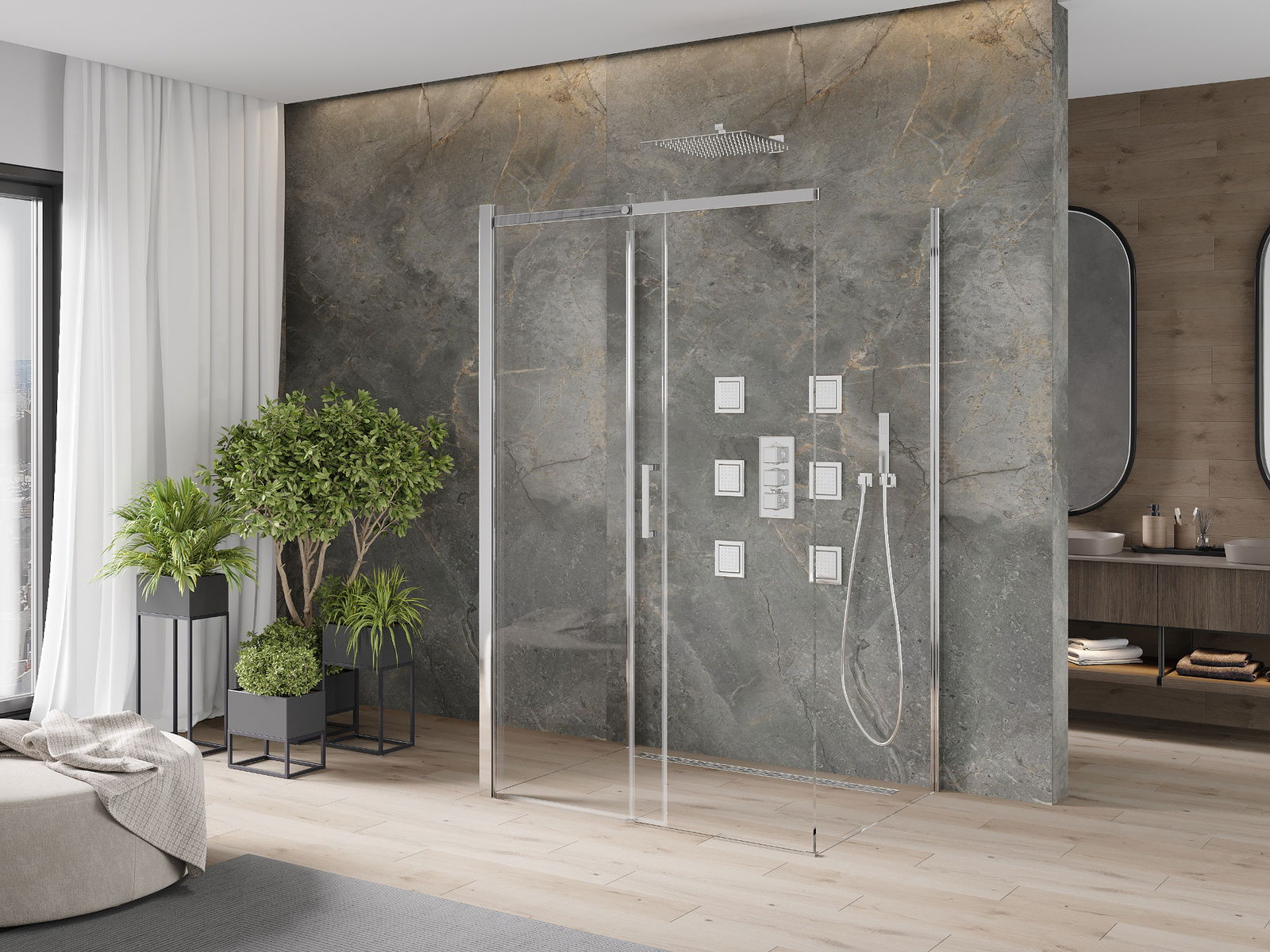 Плъзгащите се врати се движат по специални водачи и не изискват допълнително пространство, за да се отворят, поради което са подходящи за по-малки бани. Благодарение на двойните ролки с метално тяло, движението им е гладко.