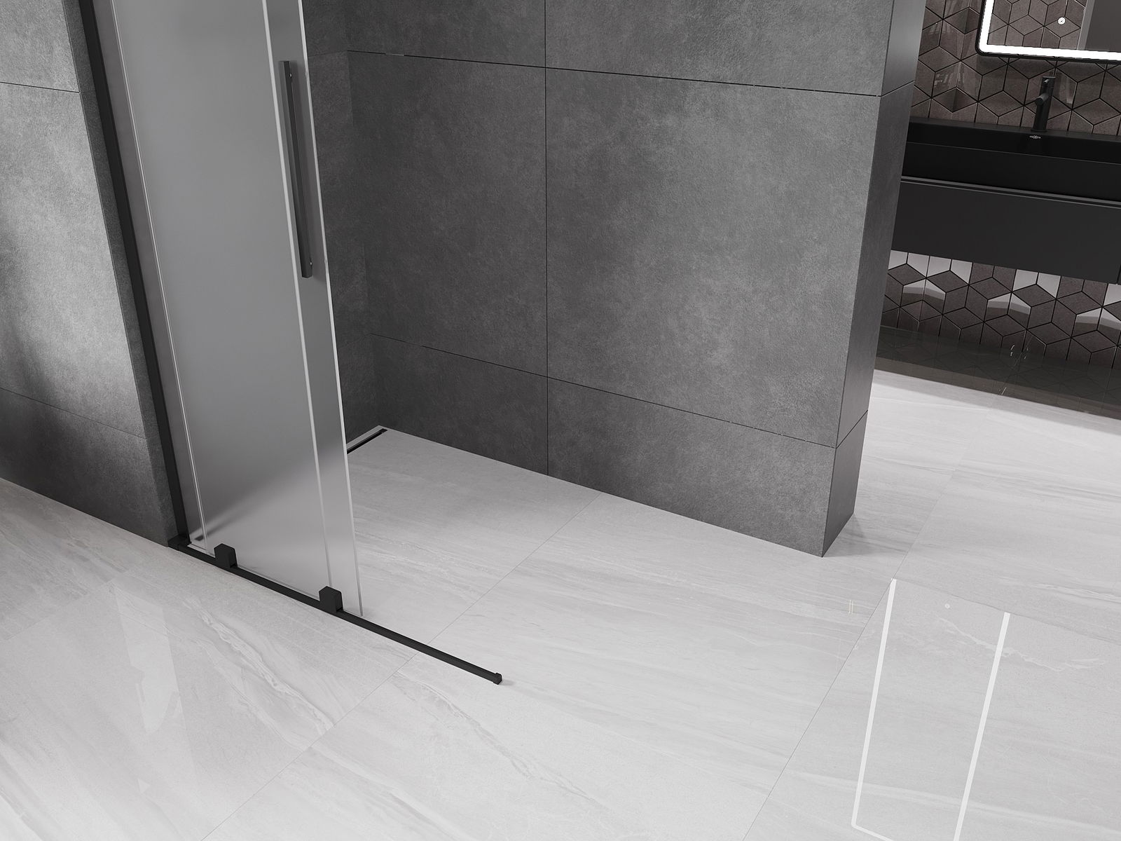 Mexen Velar L Стъклена стена за душ кабина плъзгаща се Walk-in 100 x 200 см, матирана 8 мм, черна - 871-100-003-33-70