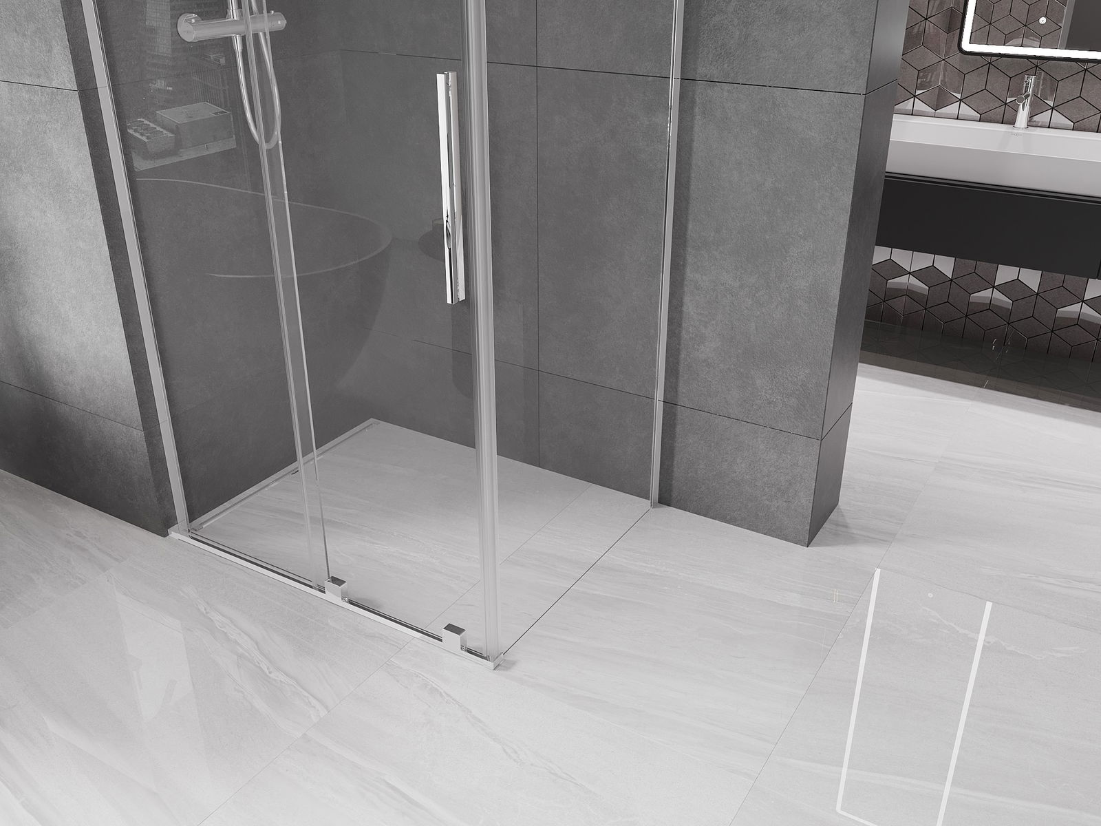Благодарение на използването на универсалната система за монтаж, душовите врати могат да бъдат монтирани отдясно или отляво, в зависимост от нуждите. Благодарение на това можете лесно да проектирате душ, който е напаснат към пространството в банята.