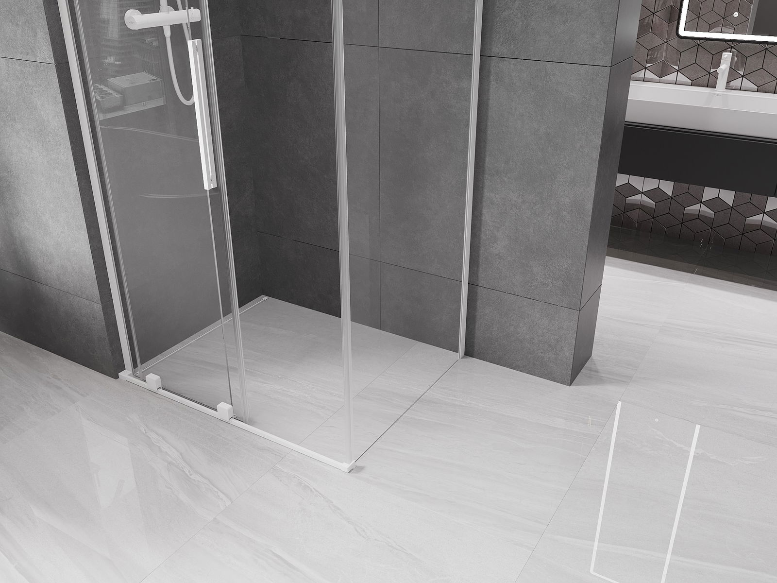 Благодарение на използването на универсалната система за монтаж, душовите врати могат да бъдат монтирани отдясно или отляво, в зависимост от нуждите. Благодарение на това можете лесно да проектирате душ, който е напаснат към пространството в банята.
