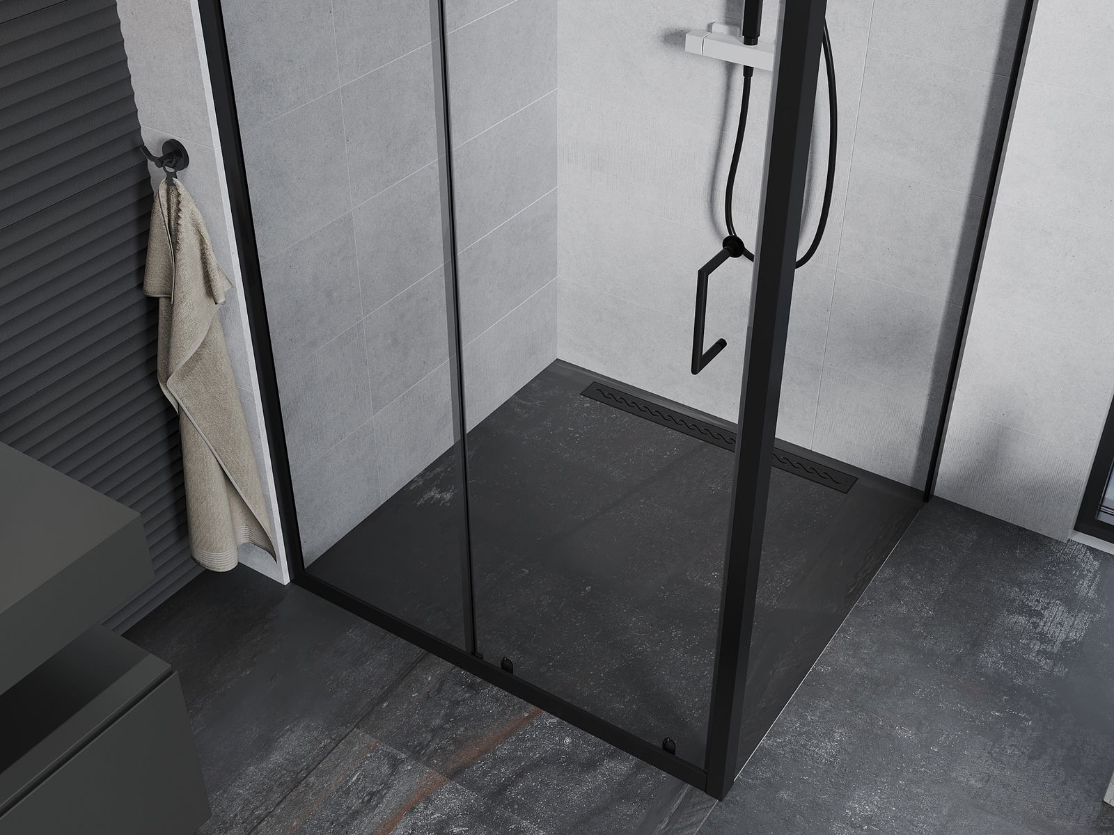 Mexen Apia плъзгаща се душ кабина 90 x 90 см, прозрачна, черна - 840-090-090-70-00