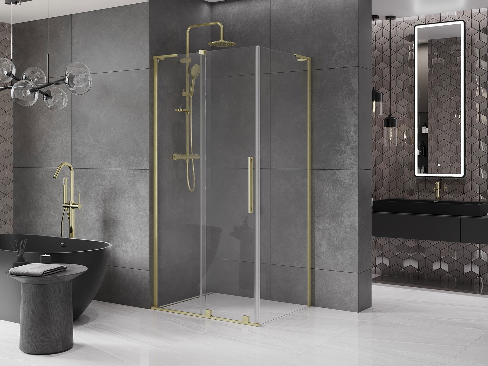Mexen Velar L плъзгаща се душ кабина 110 x 80 см, прозрачен, матирано злато - 871-110-080-03-55