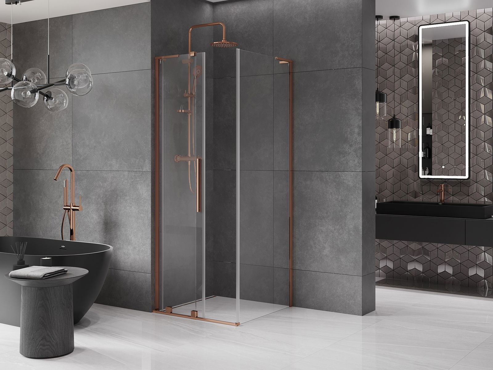 Mexen Velar L плъзгаща се душ кабина 90 x 90 см, прозрачна, розово злато - 871-090-090-03-60