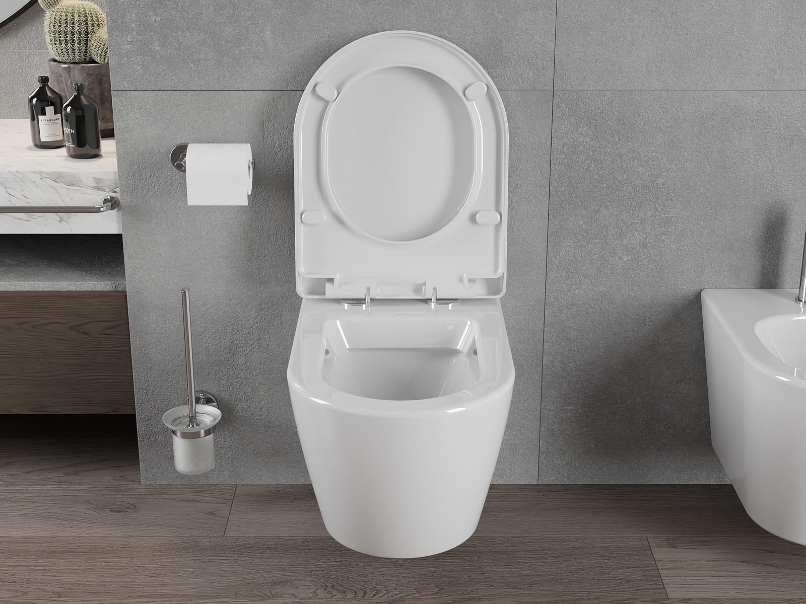 Безшумният капак на тоалетната е оборудван със специална система, която предотвратява бързото и внезапно падане. Системата ефективно елиминира проблема с тряскането на капака и минимизира шума, осигурявайки плавно и тихо затваряне на тоалетната.