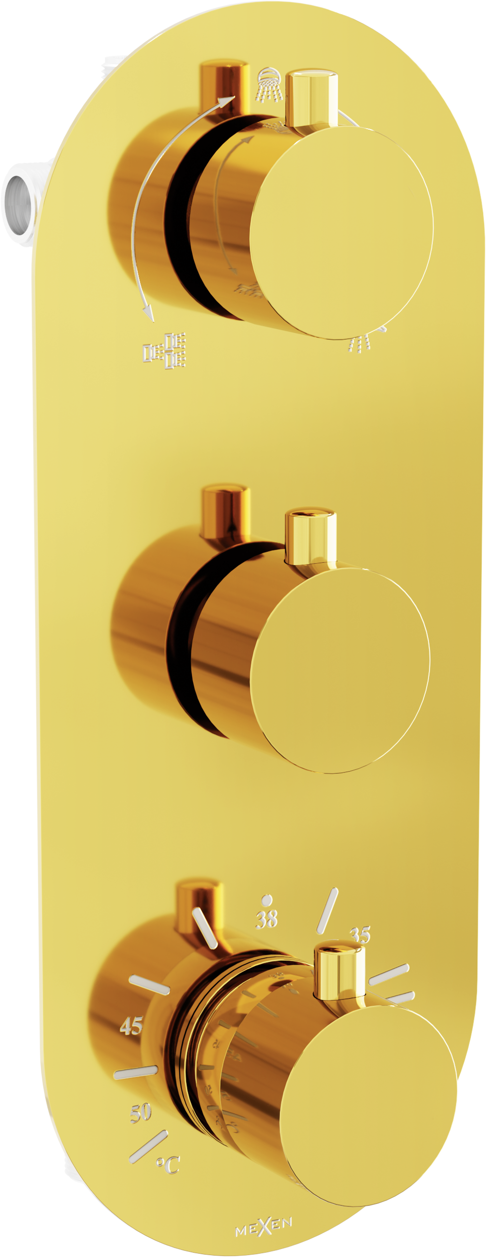 Термостатът ви дава възможност да зададете температурата на водата, която поддържа, докато се къпете. Това е иновативно решение, което не само осигурява удобство, но също така избягва внезапни температурни скокове и неприятни изгаряния.