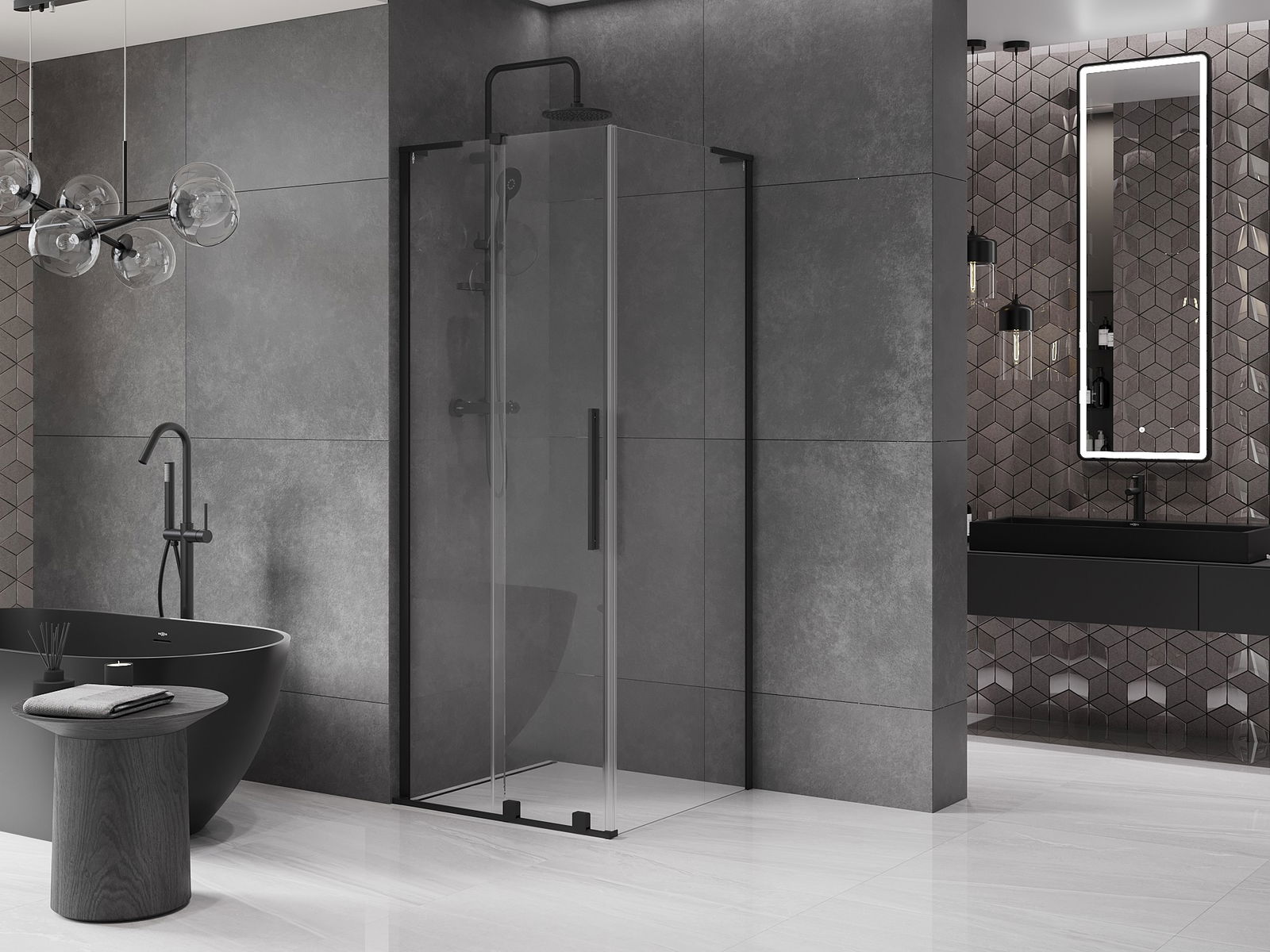 Mexen Velar L плъзгаща се душ кабина 110 x 110 см, прозрачна, черна - 871-110-110-03-70