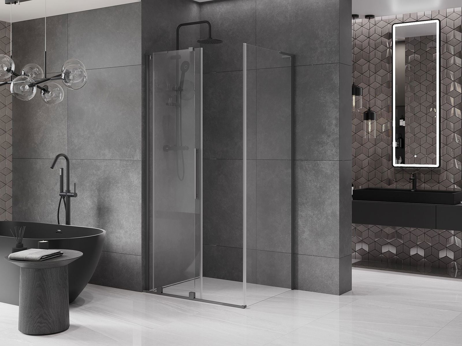 Mexen Velar L плъзгаща се душ кабина 100 x 75 см, прозрачна, оръжеен метал